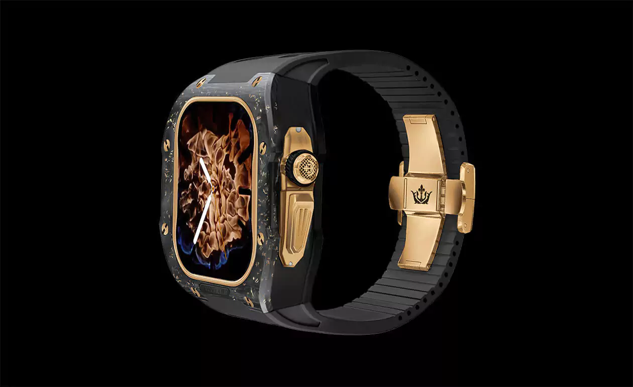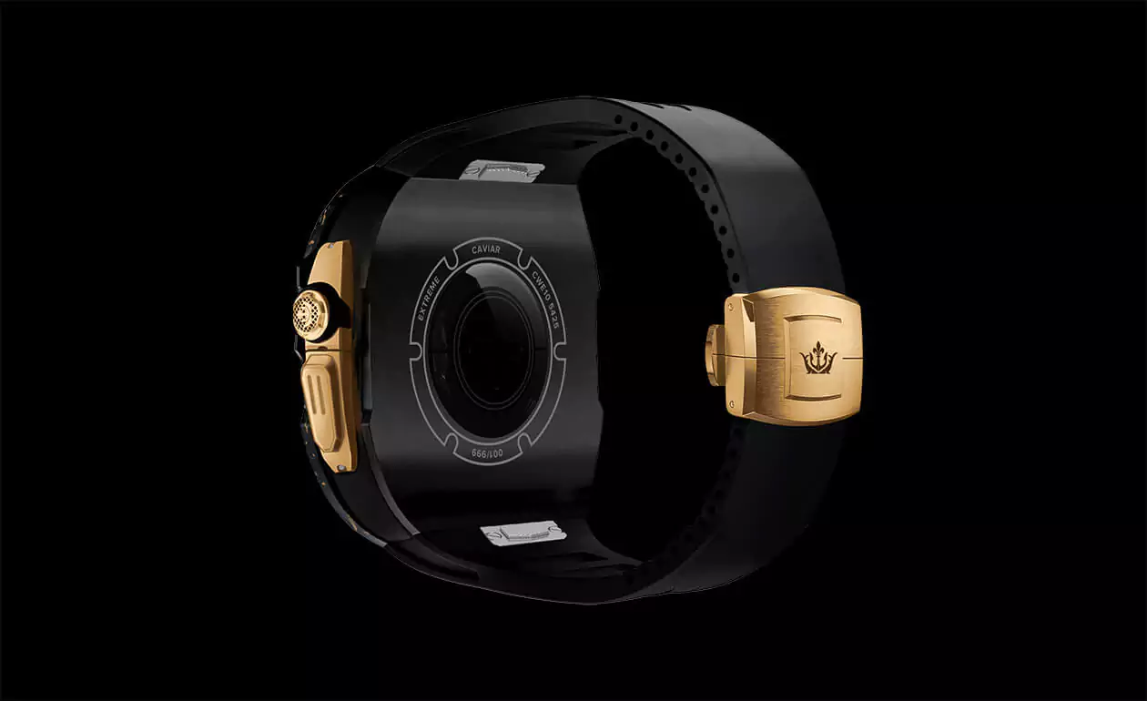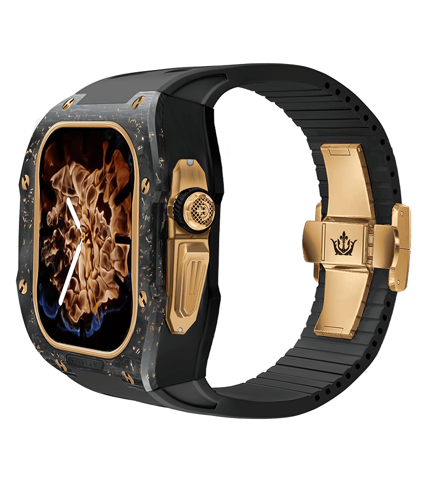 Almagro — это настоящее путешествие в мир высочайшей роскоши. Вдохновленный точностью высокоэффективного инженерного искусства создания швейцарских часов, этот шедевр от Caviar сочетает прочность углеродного волокна с элегантностью золотых акцентов. Дизайн кейса вызывает ощущение силы и утонченности, превращая каждое прикосновение к вашим часам в нечто поистине роскошное. С Almagro ваш Apple Watch становится символом силы, элегантности и инноваций.