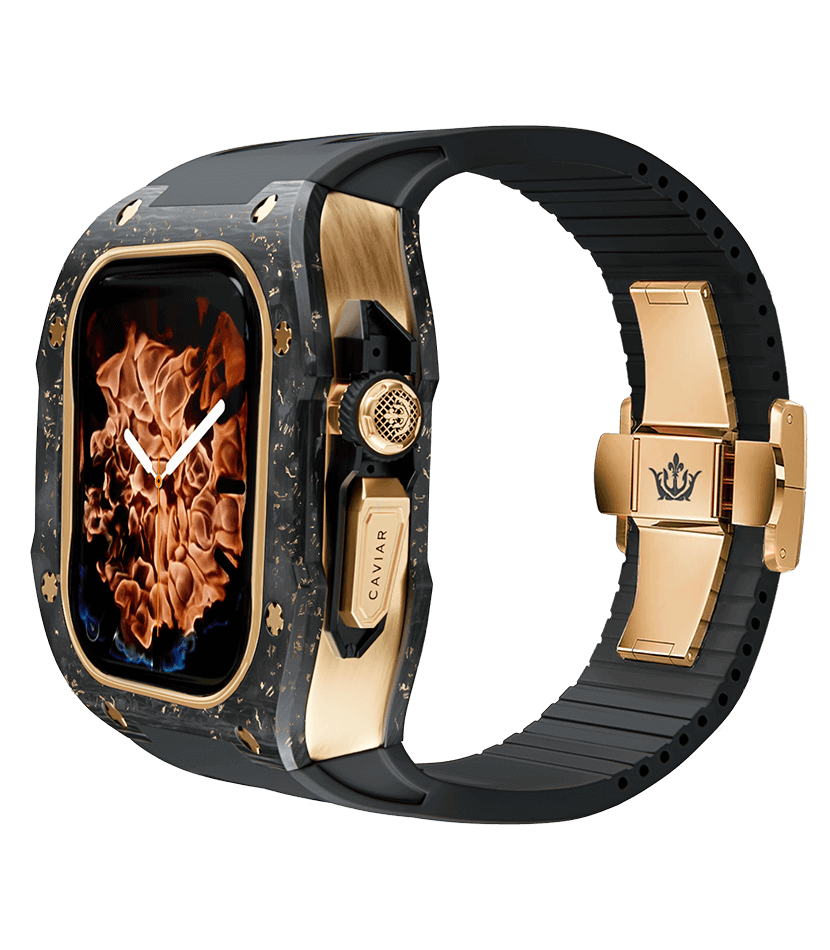 Мы создали сменный корпус для Apple Watch в спортивном стиле, чтобы мотивировать вас на новые достижения. Аксессуар выполнен из автомобильного карбона с золотыми акцентами и дополнен авиационным алюминием с PVD-покрытием, воплощая качество лучших премиальных часов.