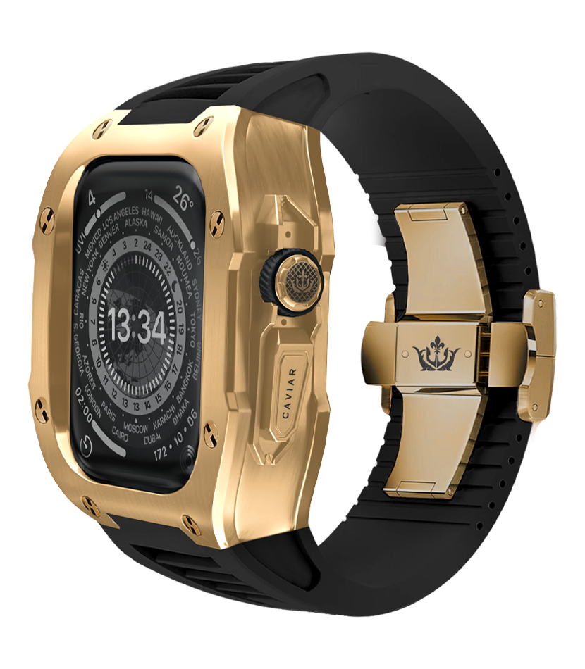 Корпус для Apple Watch "Caviar Antares" — это часы для мужчины, который не следует за течением, а прокладывает свой путь. Названные в честь одной из самых ярких звёзд ночного неба, Antares олицетворяют лидерство, амбиции и уверенность в каждом движении. Контраст жёлтого золота и чёрного карбона подчёркивает мужской характер модели: благородный блеск сочетается с технологичной мощью. Это часы, которые говорят за владельца.