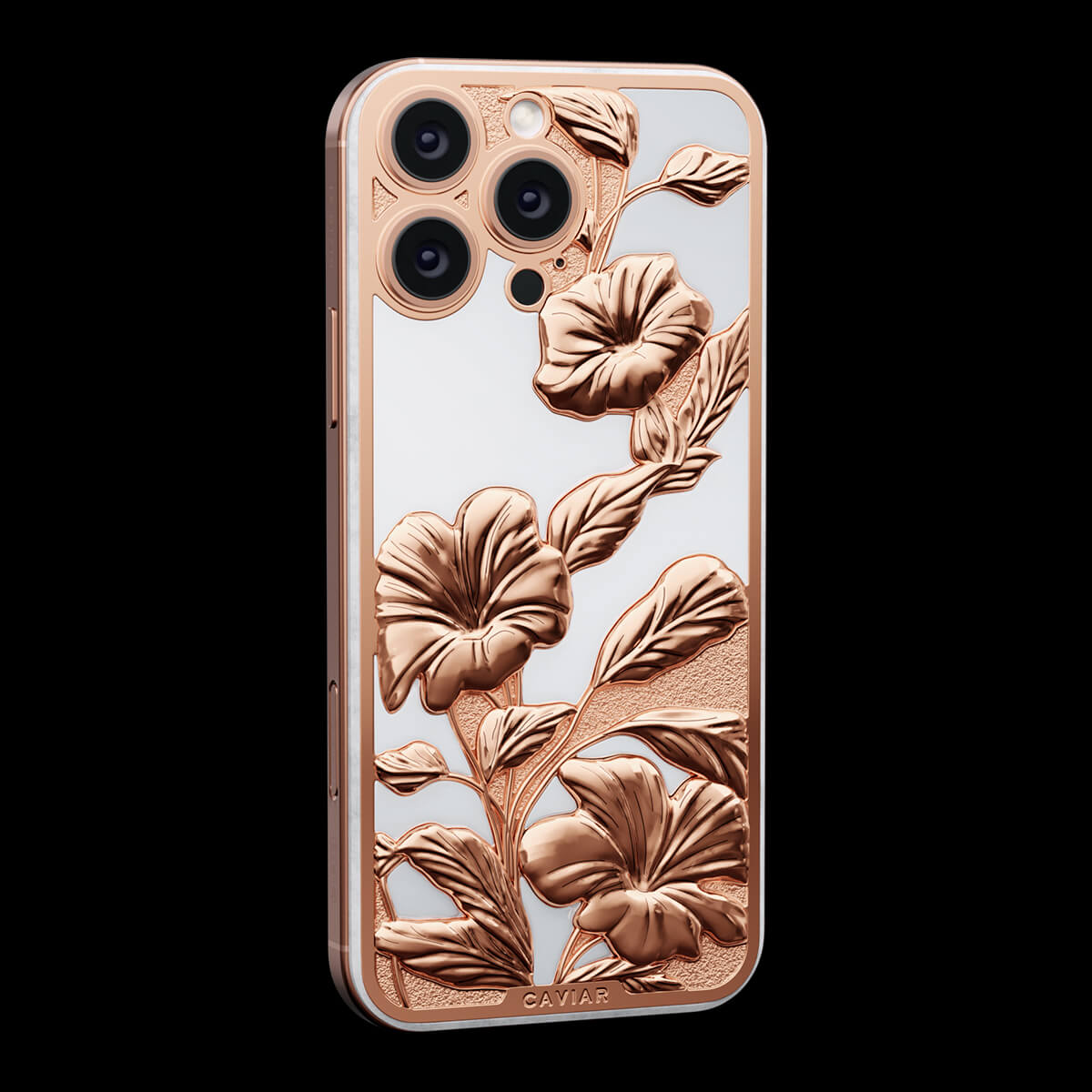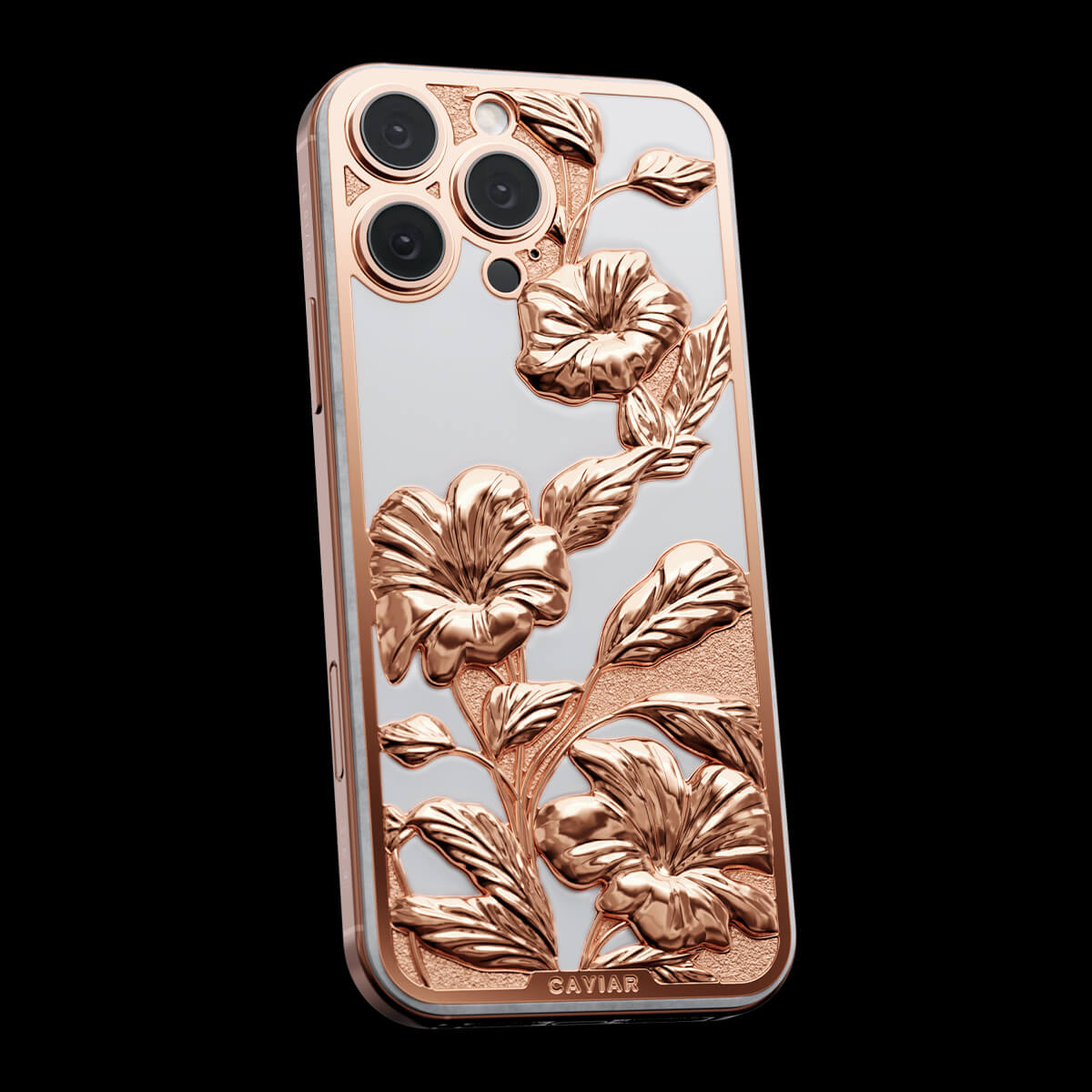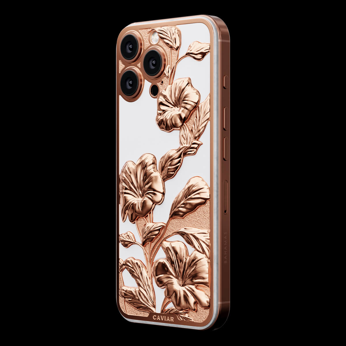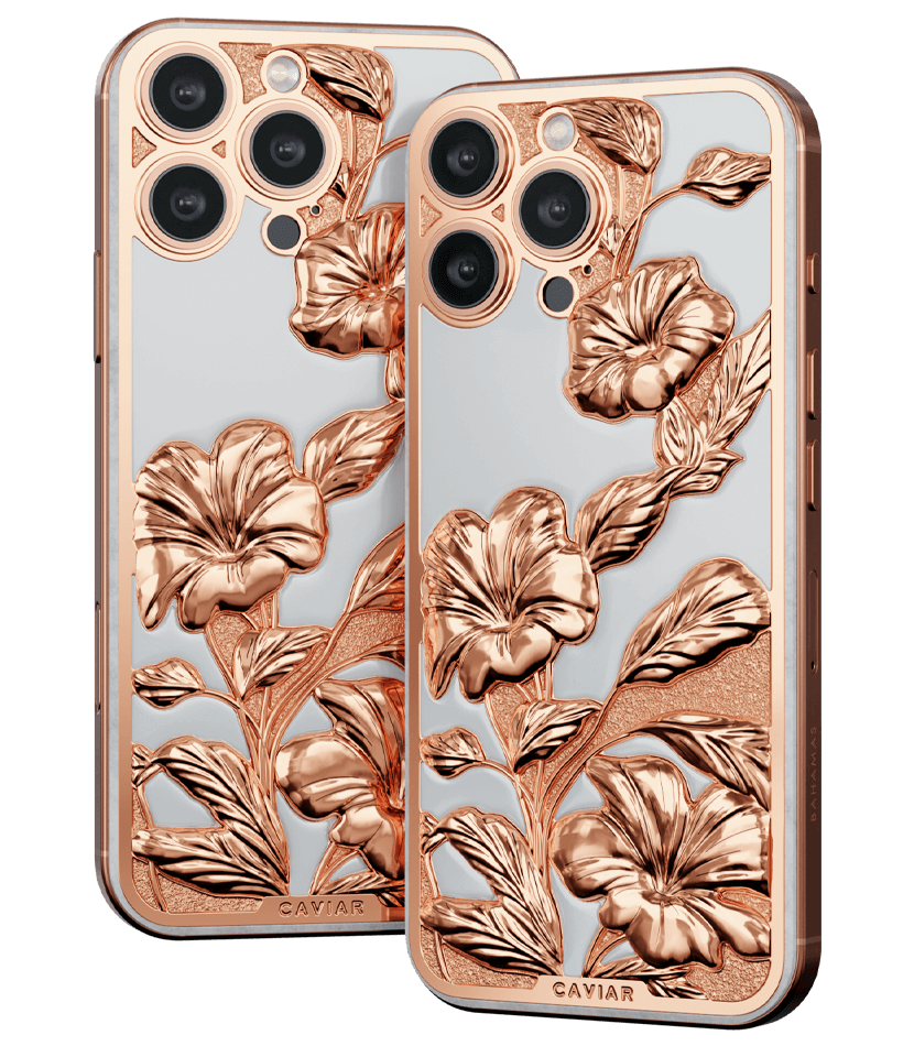 Caviar воплотил красоту тропического рая в дизайне кастомного iPhone. Белоснежный фон устройства выполнен из камня, словно песчаные берега островов, а утонченные цветочные узоры передают всю пышность тропической флоры. Обрамление из розового золота дарит теплоту, перекликаясь с закатами, отраженными в воде.