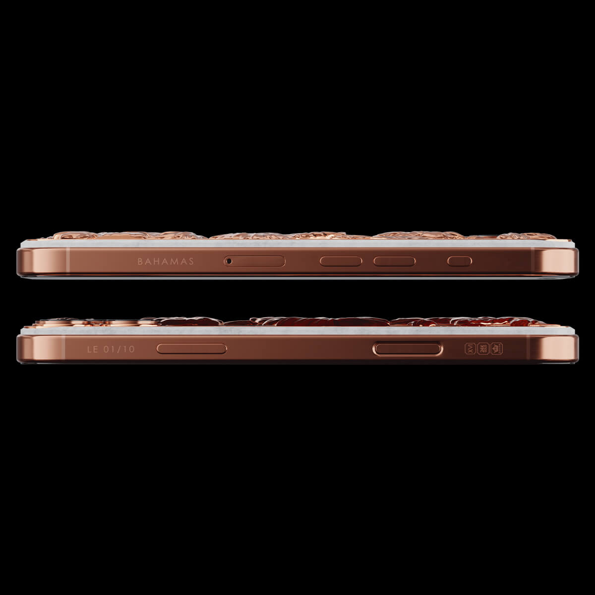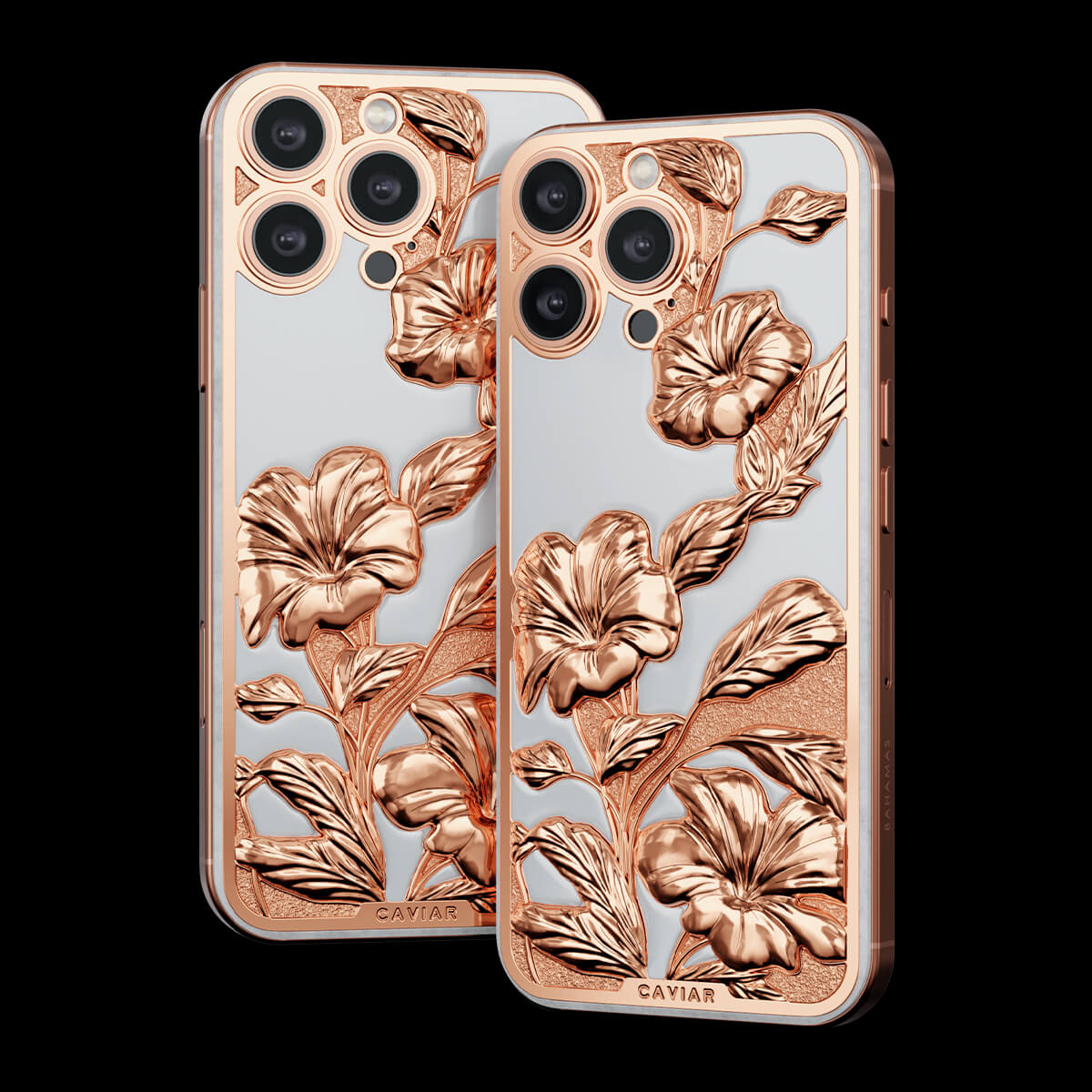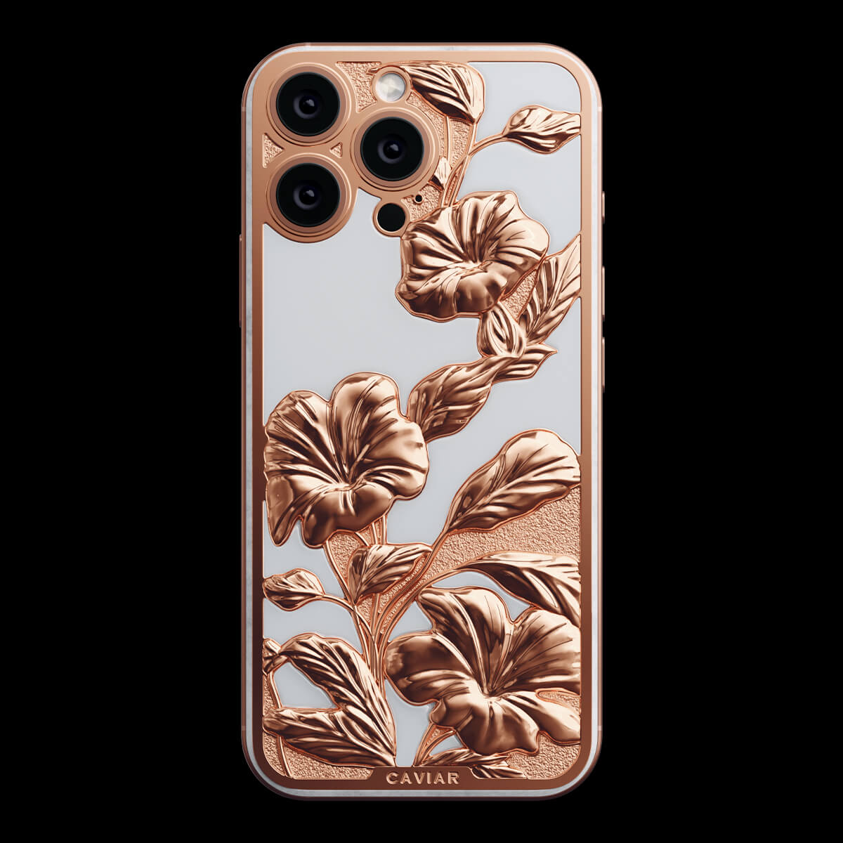 Caviar воплотил красоту тропического рая в дизайне кастомного iPhone. Белоснежный фон устройства выполнен из камня, словно песчаные берега островов, а утонченные цветочные узоры передают всю пышность тропической флоры. Обрамление из розового золота дарит теплоту, перекликаясь с закатами, отраженными в воде.