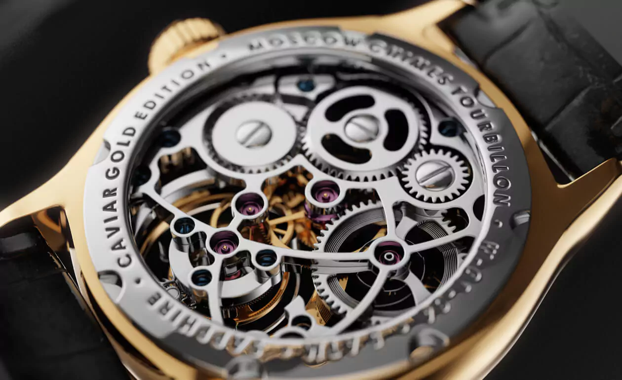 The majesty of the Kremlin clock, elegance in the Caviar style and the preciseness of the rate, guaranteed by the ideal miniature tourbillon – these are that splendid elements of that the image of the luxurious Caviar watch has been built! This model truly exceeds all expectations with its full confidence – classic, strict men’s watch not just with complications, but with sense as well!