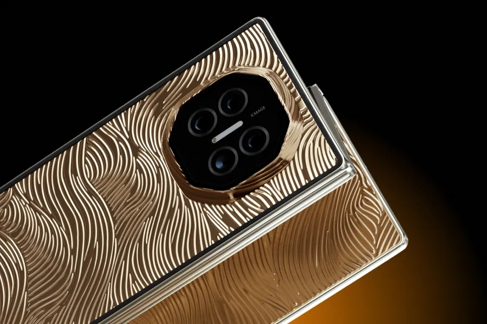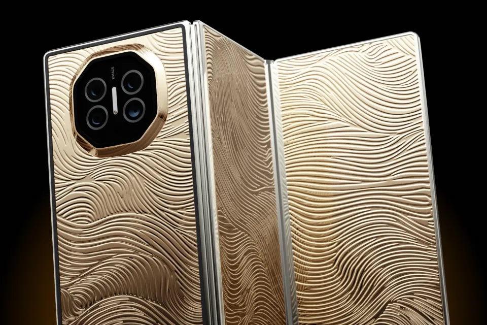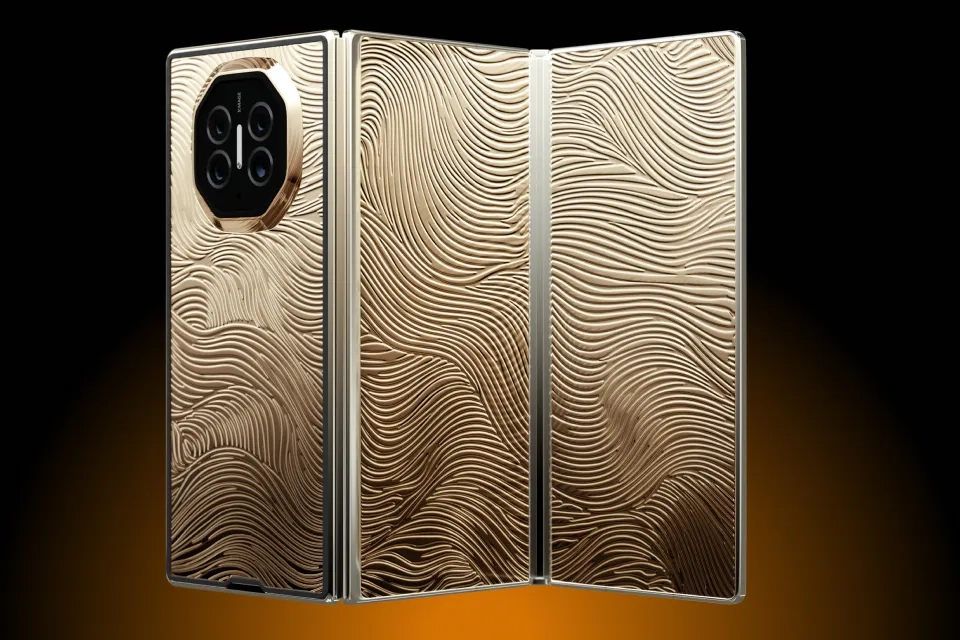 Первый в мире Huawei Mate XT в золотом корпусе.