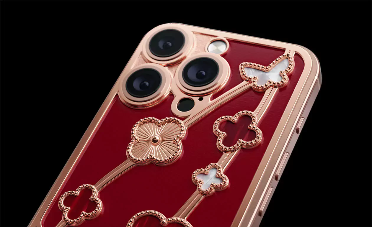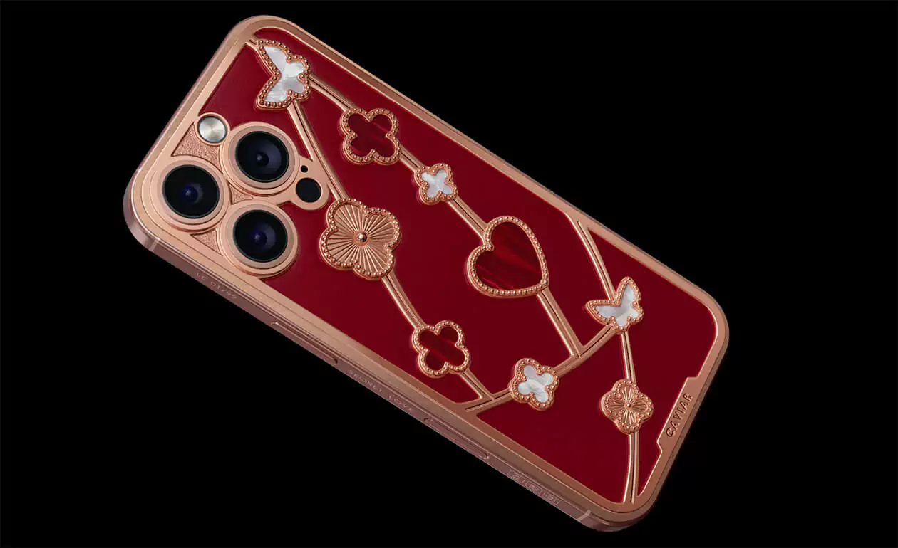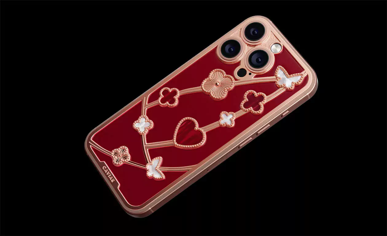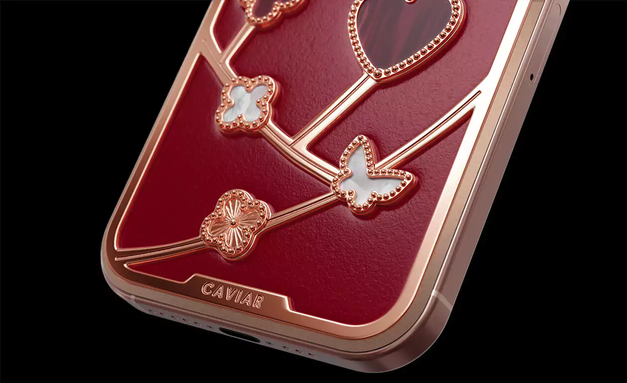 Bouquet Doré воплощает весеннее пробуждение и легкость природы. Сердце рассказывает о любви, четырехлистный клевер обещает удачу, а перламутровые бабочки добавляют воздушности. Этот дизайн вдохновлен флоральными мотивами Van Cleef и ренессансной эстетикой. Bouquet Doré — это романтика, воплощенная в iPhone для тех, кто выбирает красоту и нежность.