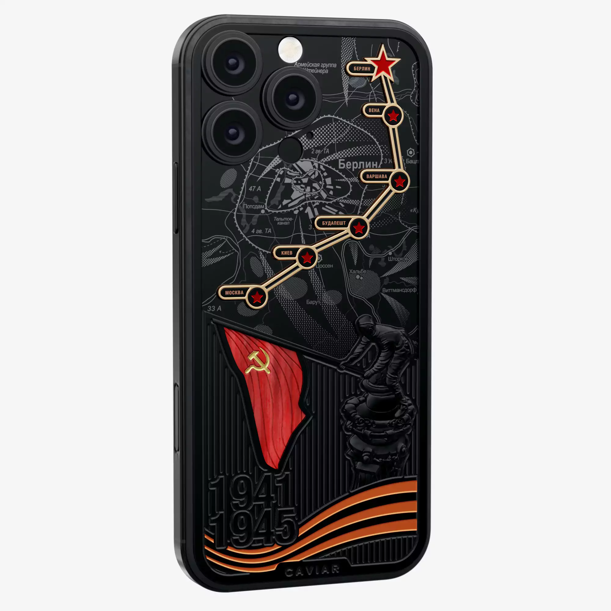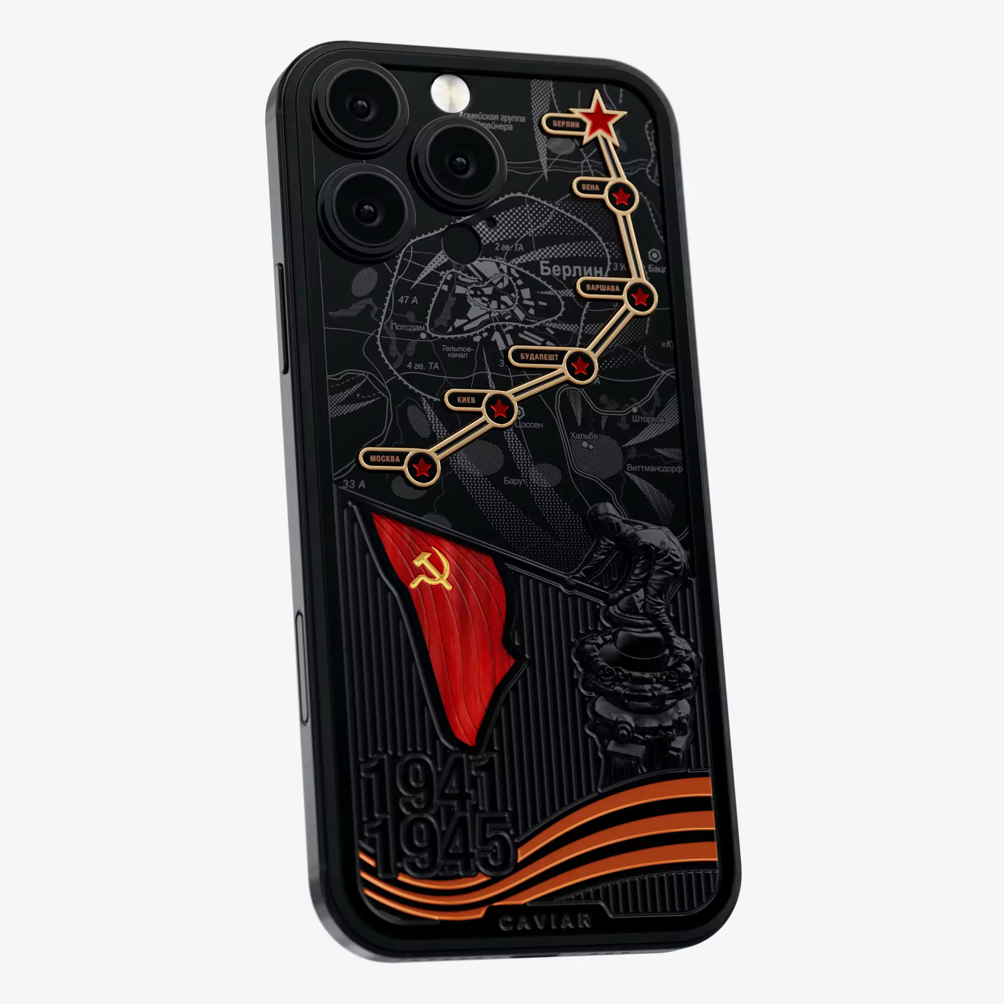 Красная Армия прошла долгий путь — от стен Москвы до Берлина. Мастера Caviar изобразили на корпусе iPhone «Взятие Берлина» шесть ключевых вех этого пути: Москва, Киев, Варшава, Будапешт, Вена и Берлин. Каждая точка — не просто город, а страница в истории, полная мужества, боли и надежды.