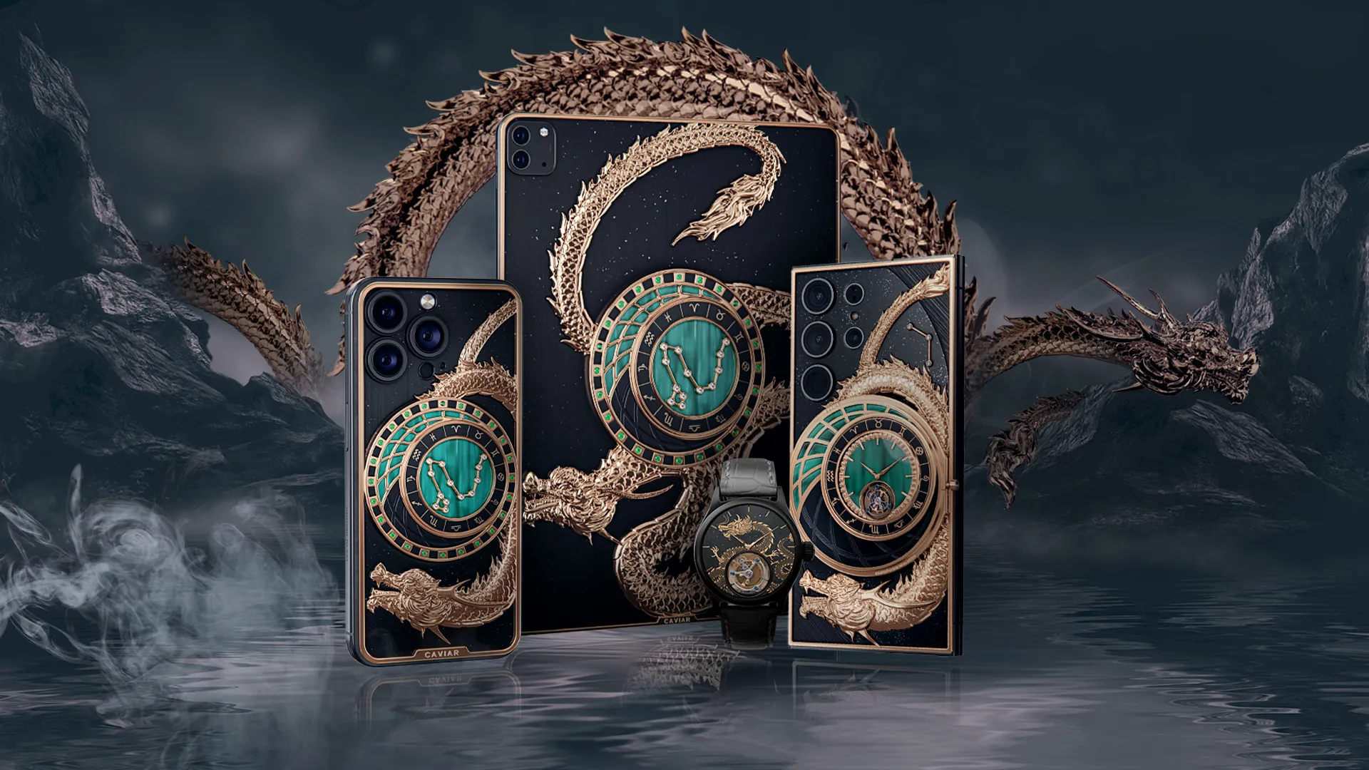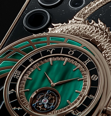 Насладитесь гармонией деталей - механические часы Caviar с турбийоном и зеленым циферблатом, объемная скульптура Дракона, зодиакальный круг, покрытый 24-каратным золотом, бриллиантовое созвездие, отсылающее к истории Samsung. Всего 24 экземпляра во всем мире.