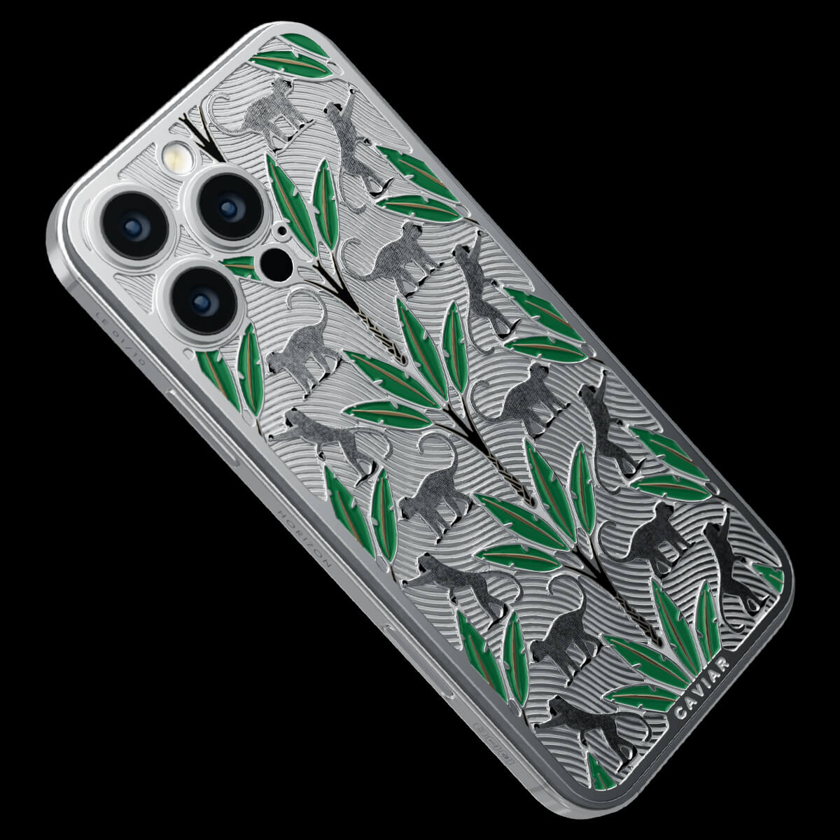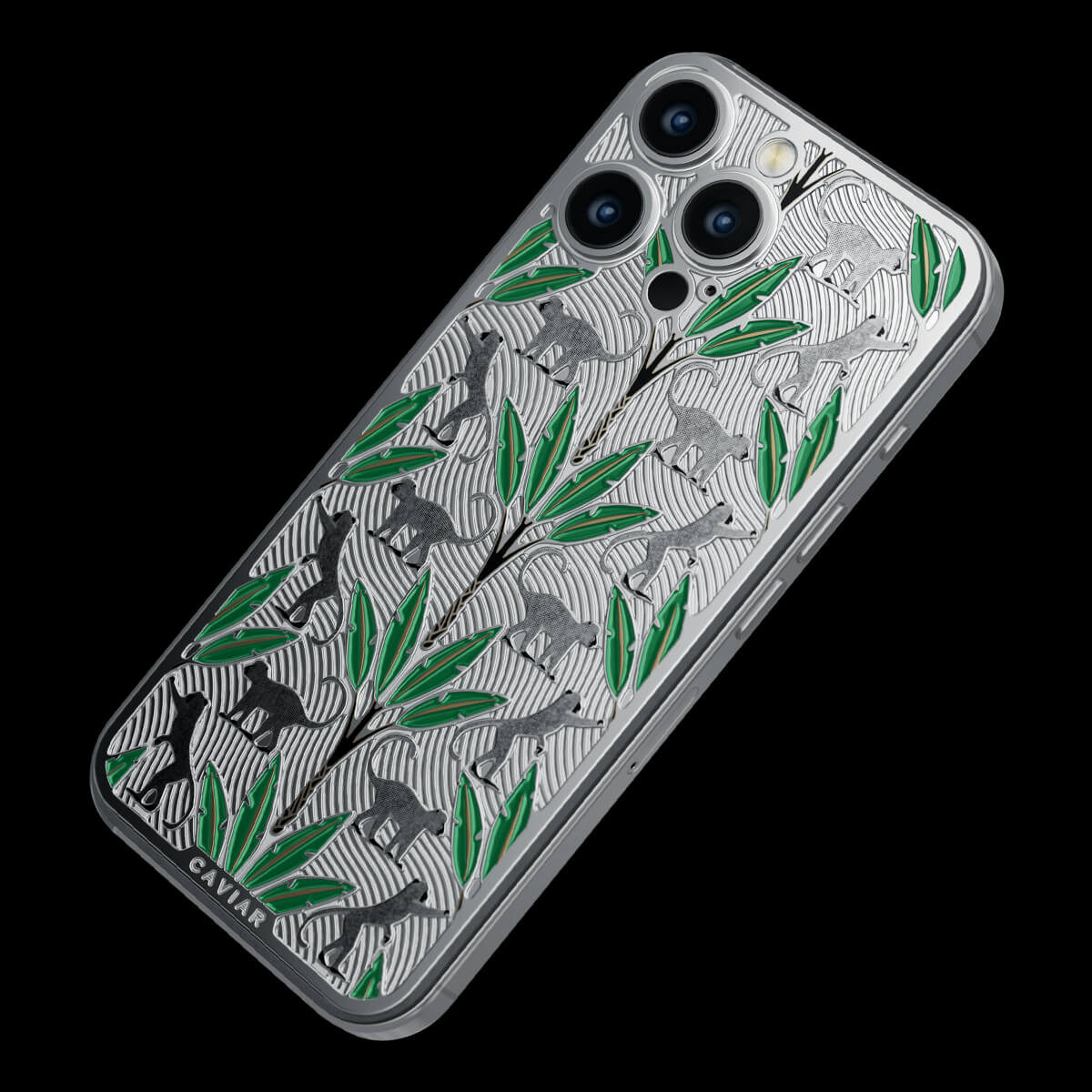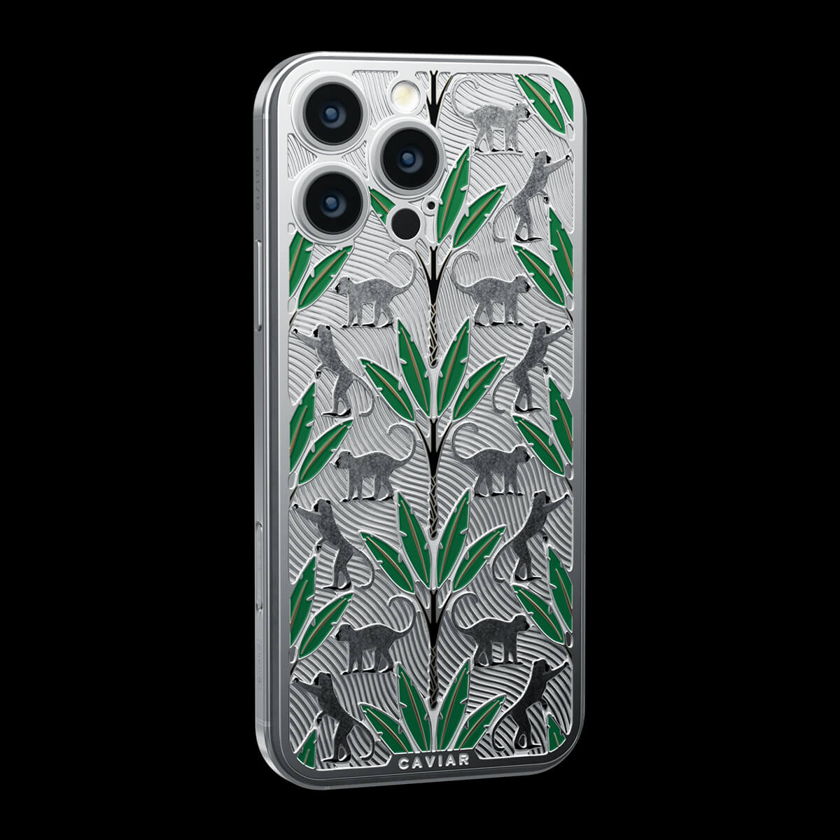 Титановая поверхность Gibraltar от Caviar словно высечена самой природой – на ней выгравированы гордые силуэты обезьян-маготов, которые стали символами этого места. Черные стволы пальм дополняют картину, а изумрудные эмалевые листья оживляют дизайн.