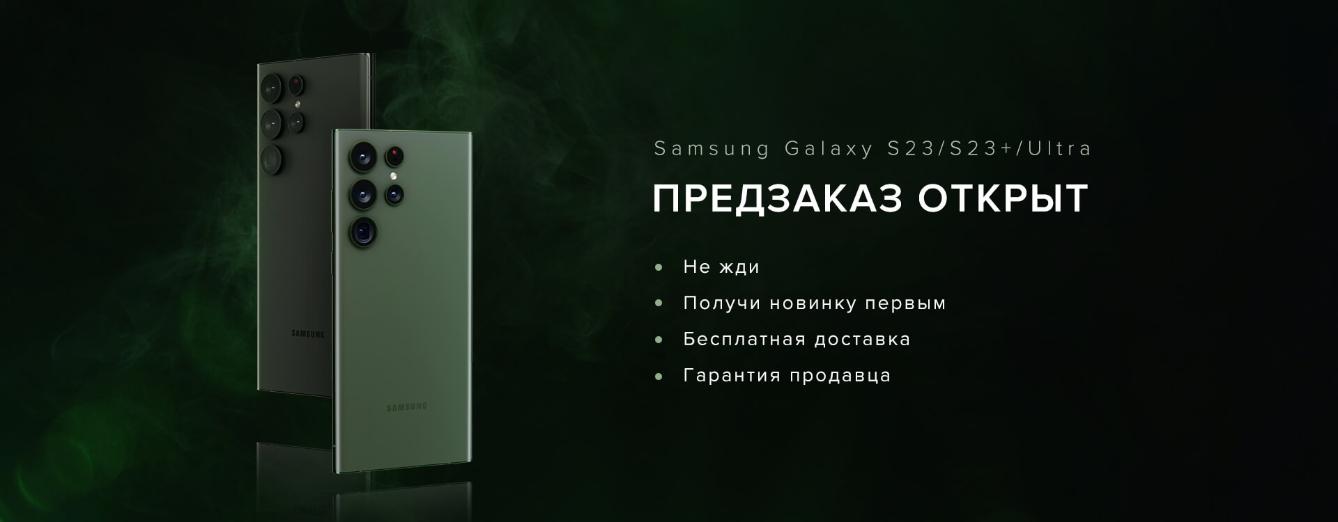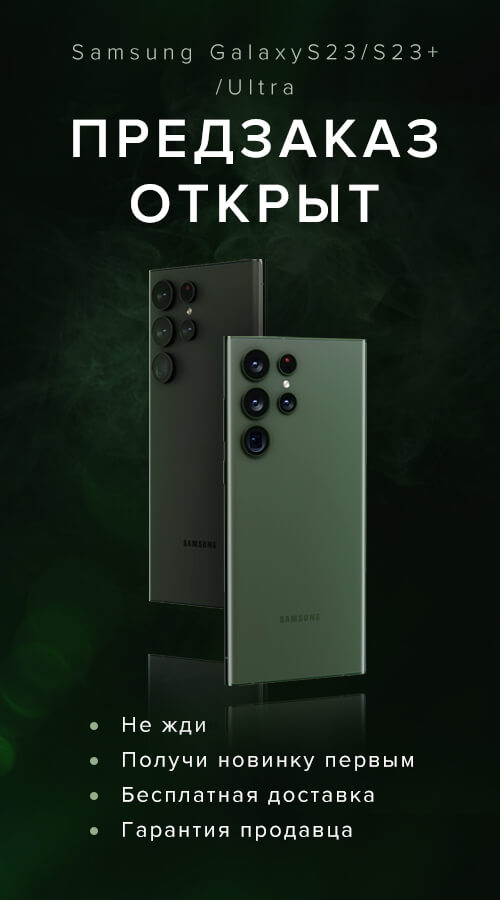 Доверие к Samsung растет год от года благодаря непревзойденному качеству, которым славится продукция корейского гиганта. А смартфоны от Samsung – это еще и вызов другим брендам. На данный момент, самые лучшие дисплеи, возможность рукописного ввода с помощью S-Pen и камеры с высочайшим разрешением – это то, что отличает Samsung Galaxy на рынке современных гаджетов. Новое поколение Galaxy S23 обещает настоящий прорыв в сфере технологий. Убедитесь в этом сами, сделав предзаказ на Samsung Galaxy S23, Samsung Galaxy S23+ или Samsung Galaxy S23 Ultra.