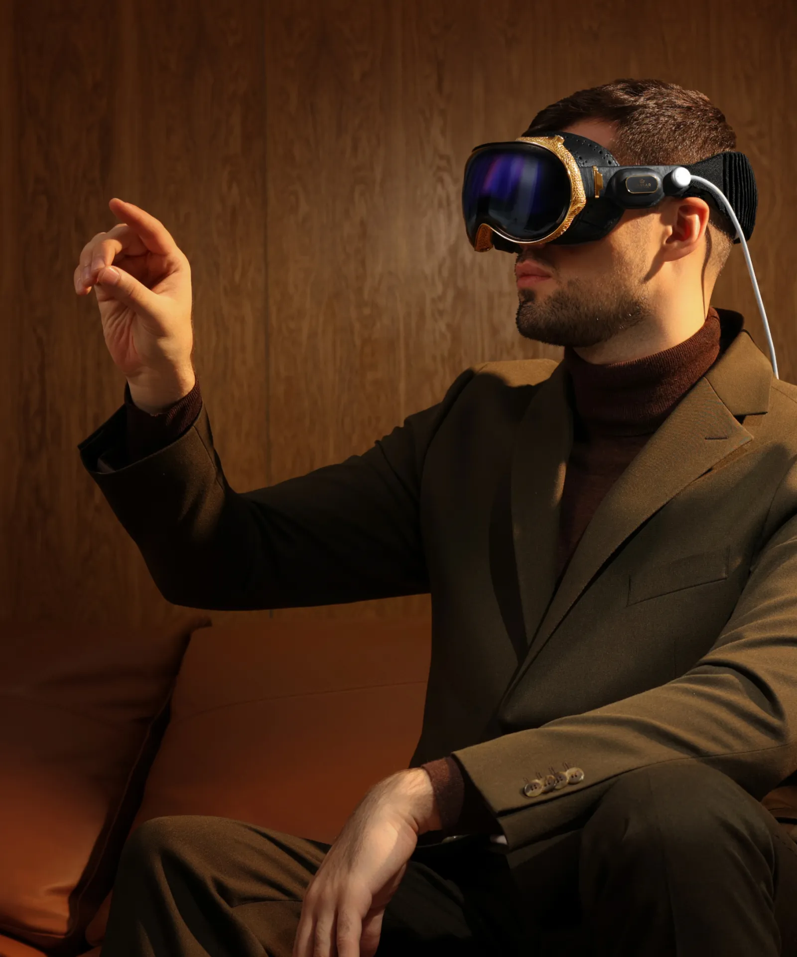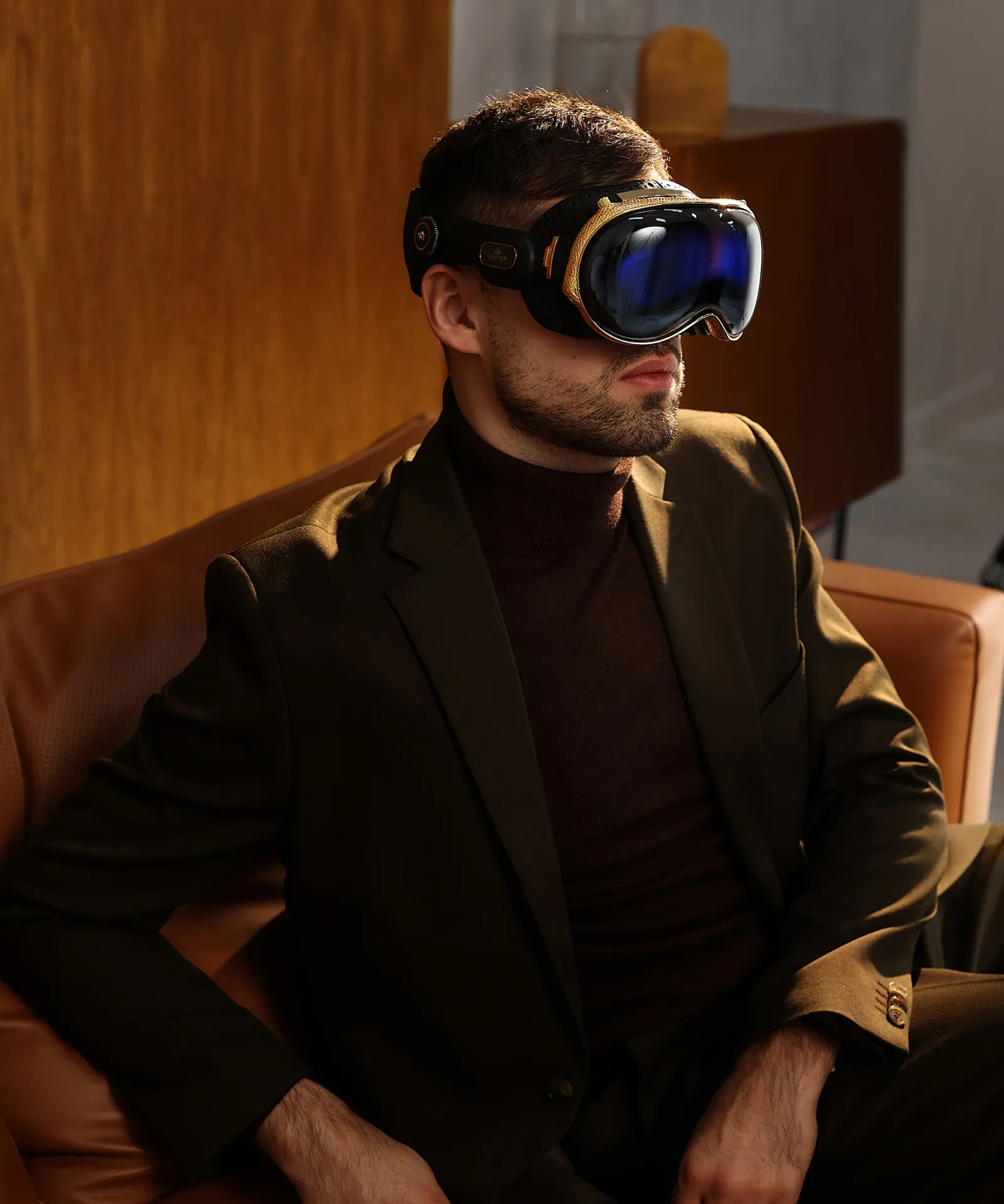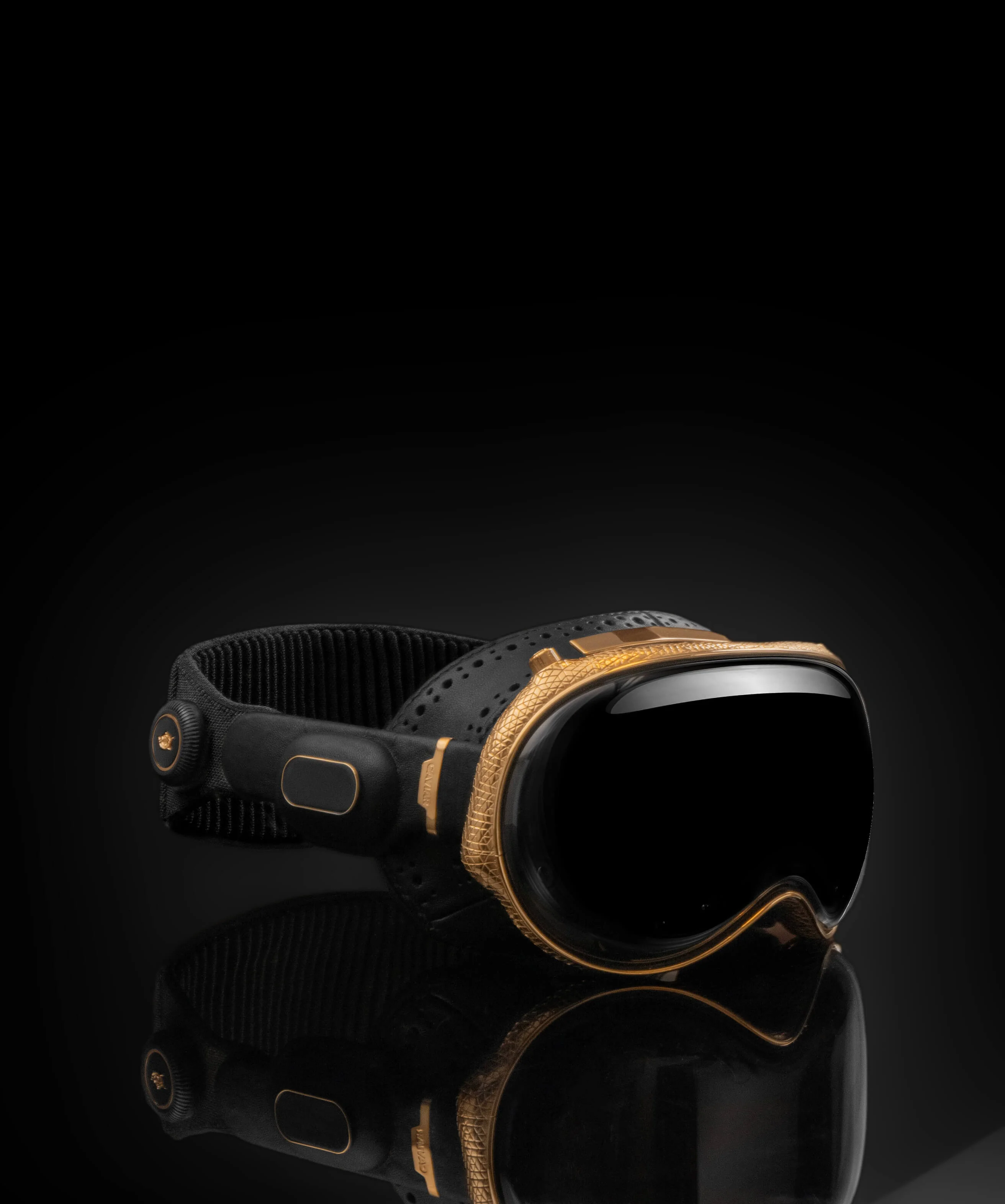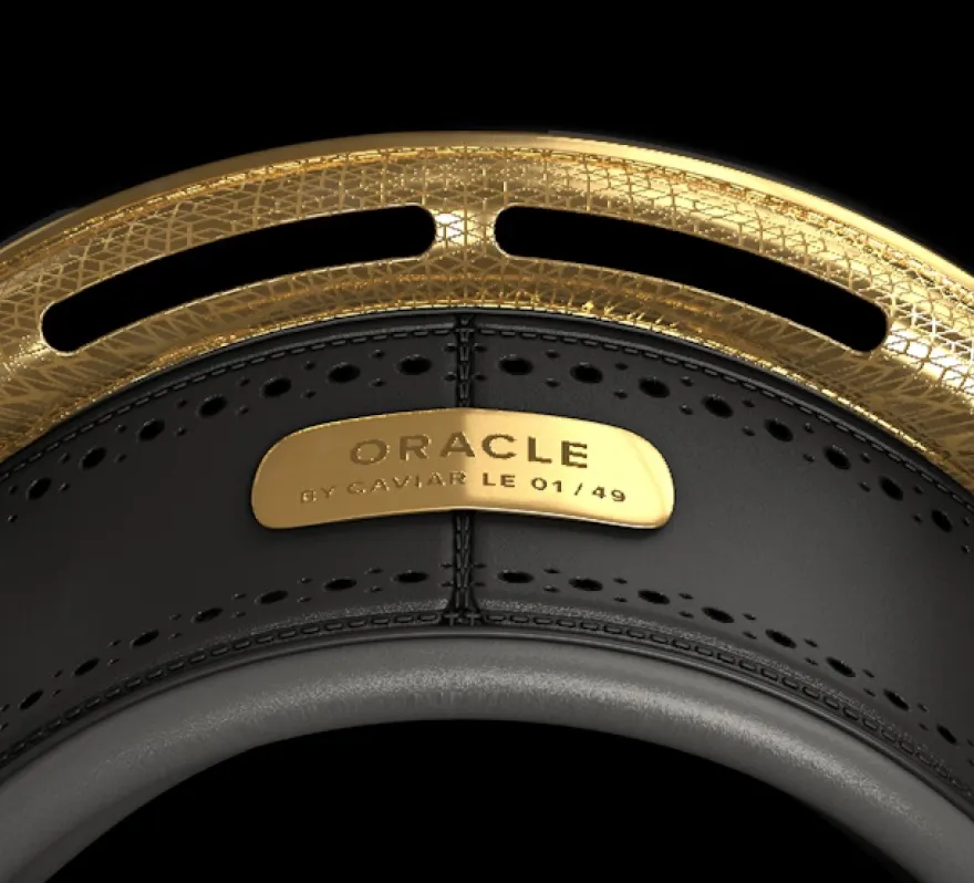 Модель Oracle от Caviar — это проводник в будущее роскоши и технологий. Каждая деталь кастомного Apple Vision Pro уникальна. Элементы, прилегающие к лицу, покрыты натуральной кожей, прошитой вручную. Рамка покрыта золотом 999 пробы и украшена утонченными узорами.