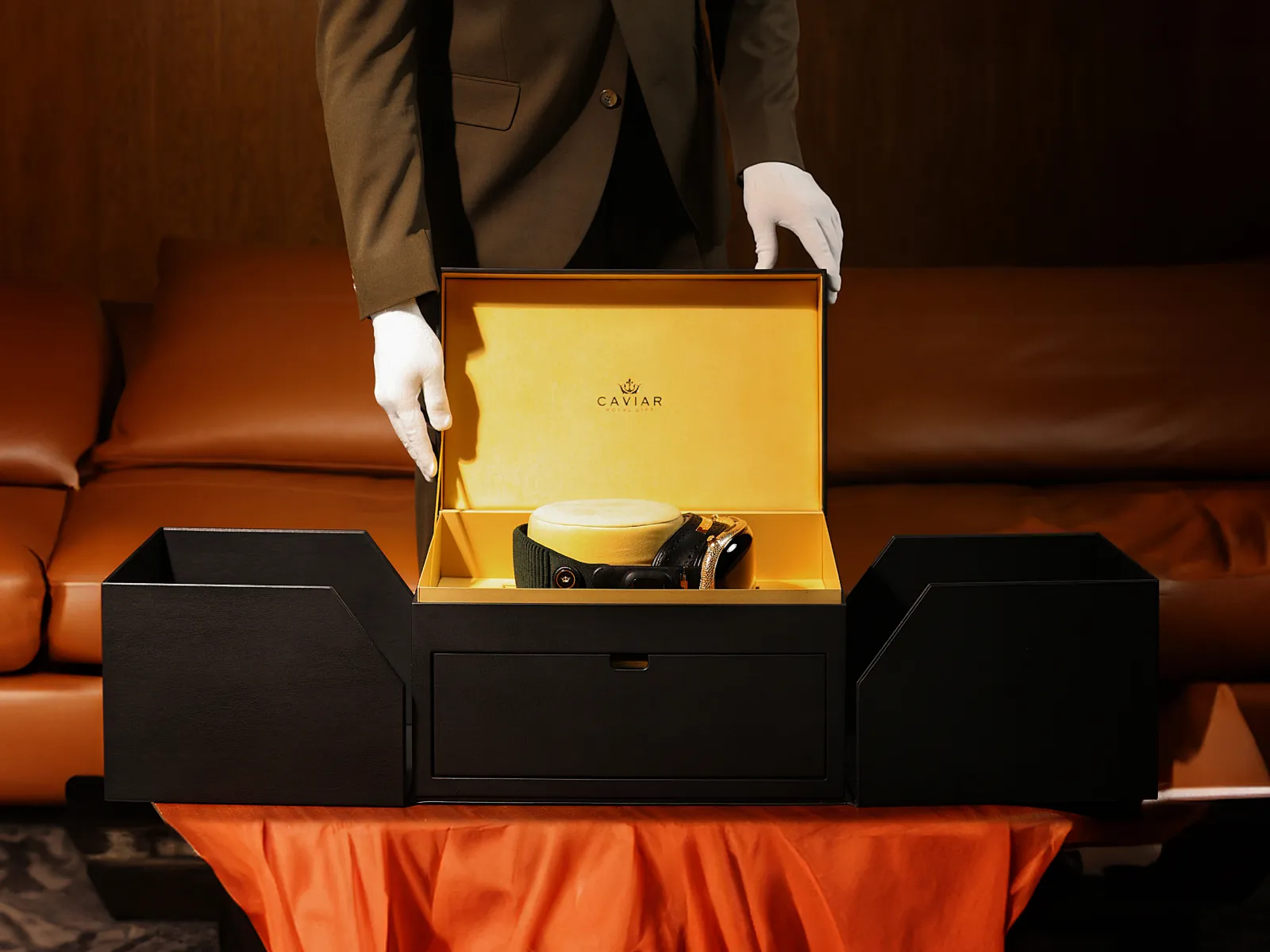 Вставки, покрытые золотом 999 пробы, гармонично завершают образ, придавая ему элегантный блеск и статусность.