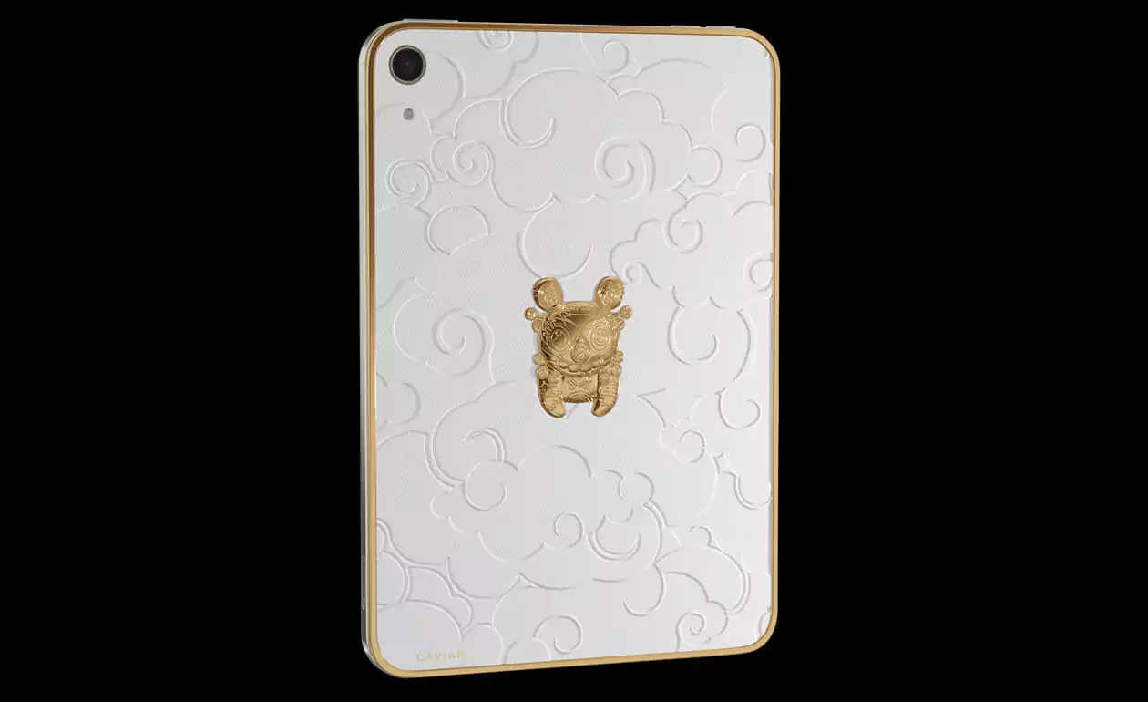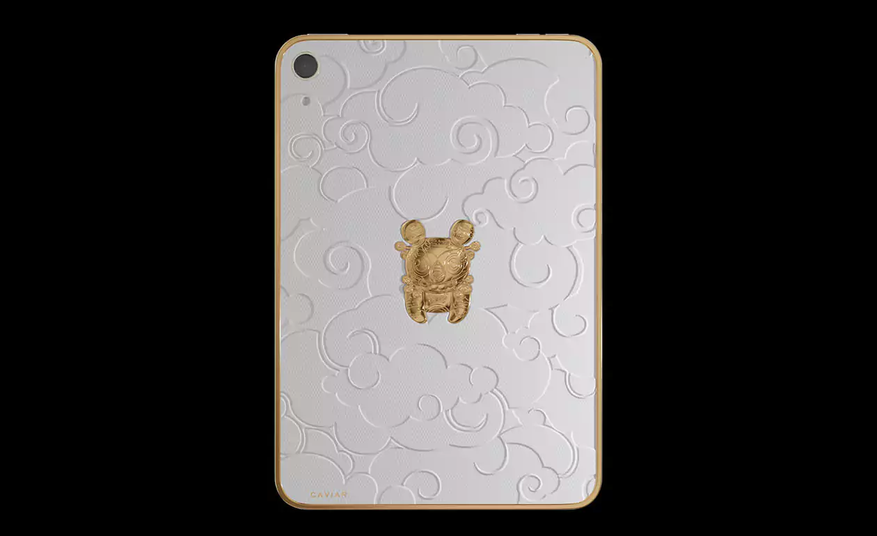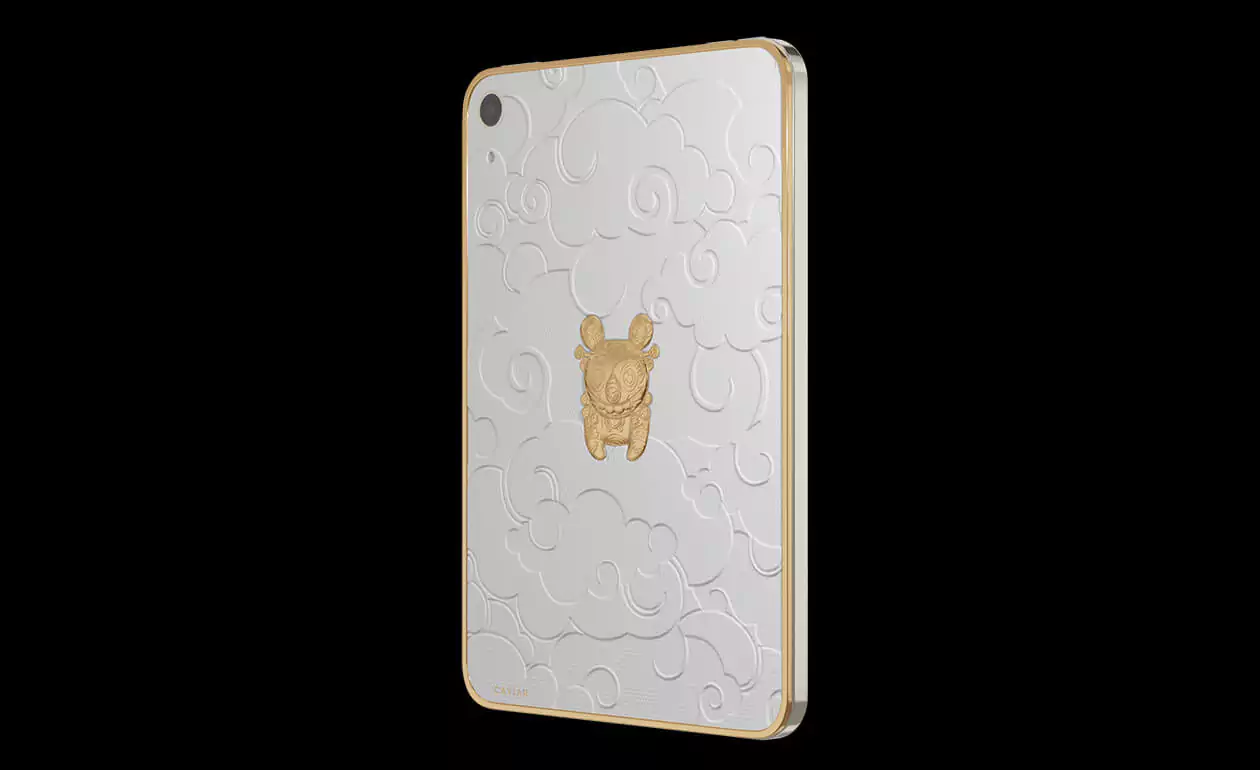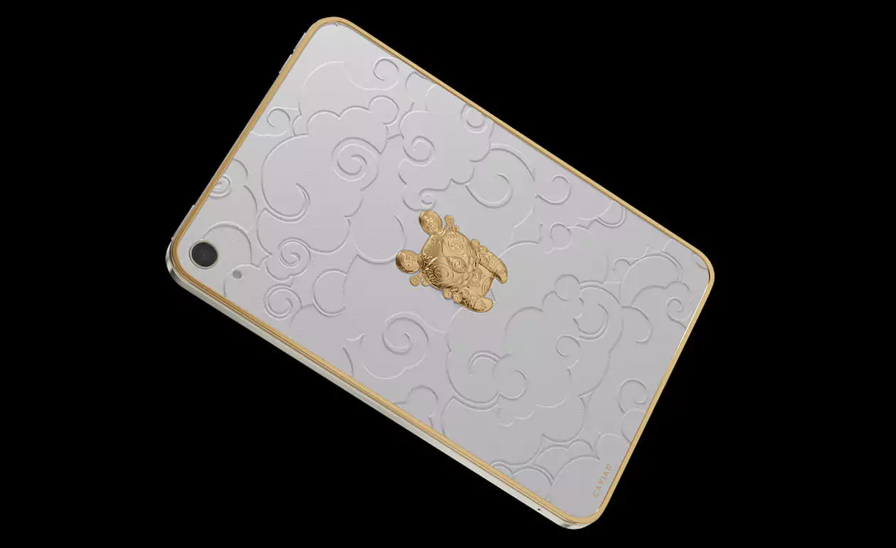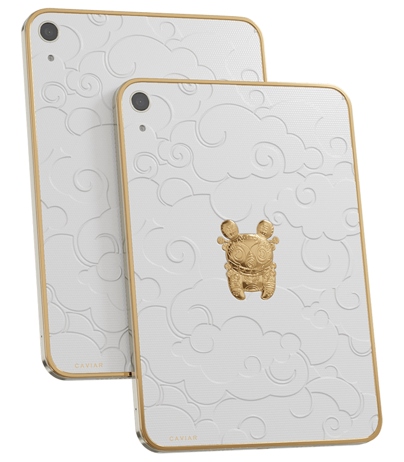 Дизайнеры Caviar покрыли корпус изящного iPad mini 6 легким, противоударным композитным материалом белого цвета, символизирующим облака. В облаках парит маленький тигренок, выполненный из золотого сплава, покрытого золотом по технологии Double Electroplated (24K).