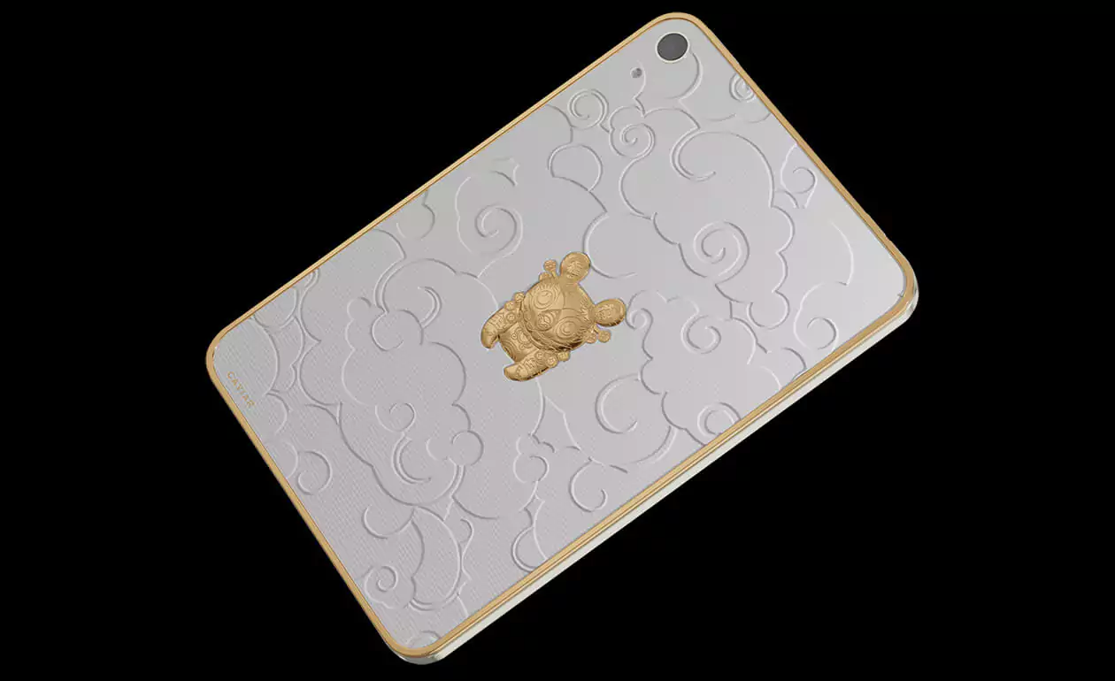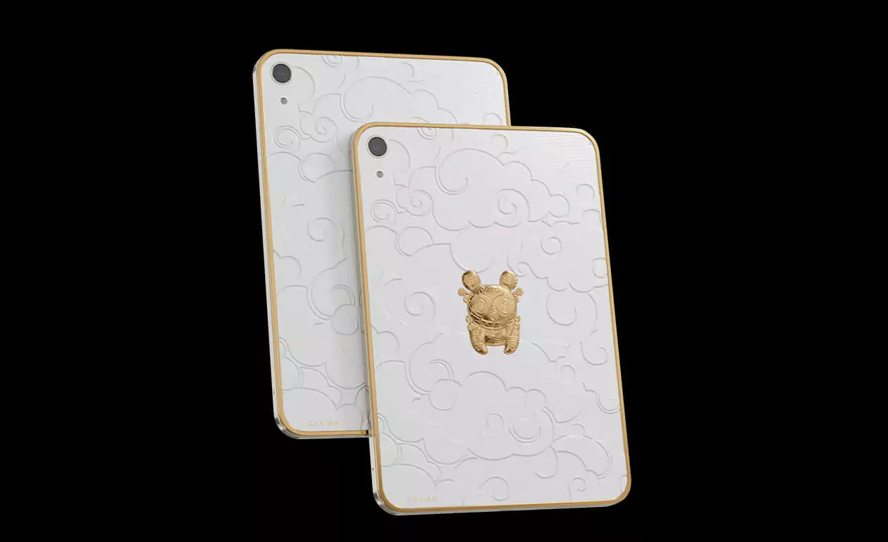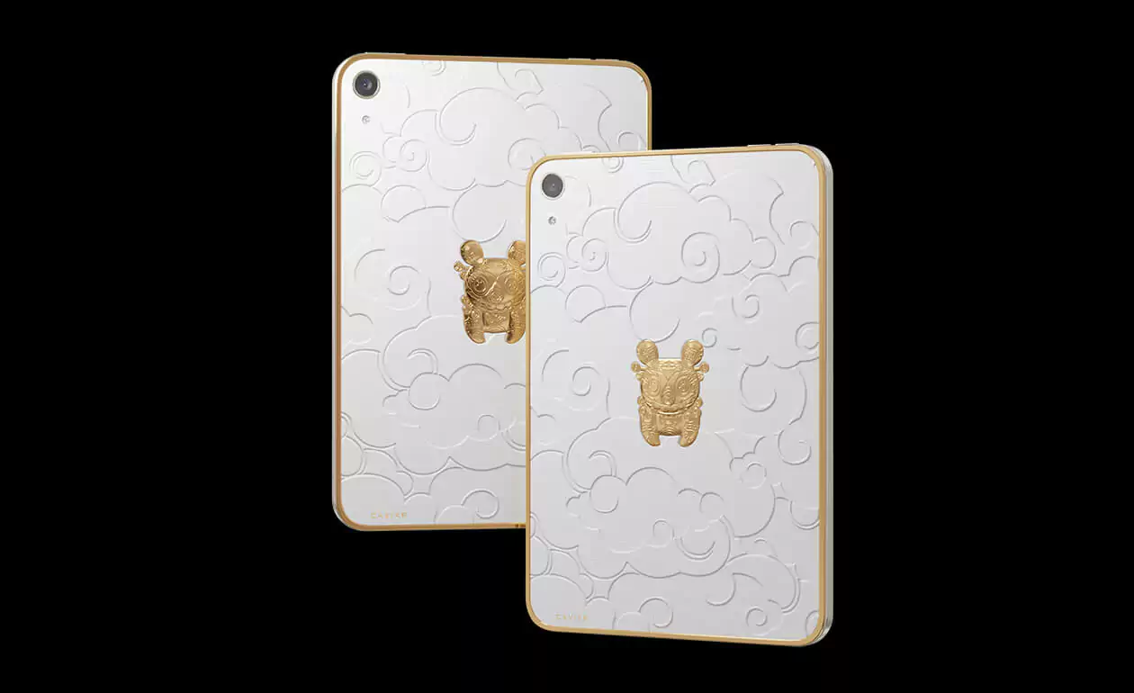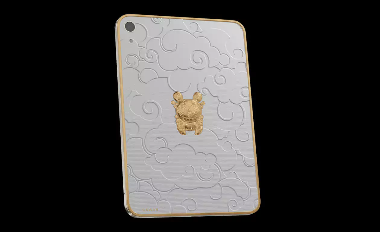 Дизайнеры Caviar покрыли корпус изящного iPad mini 6 легким, противоударным композитным материалом белого цвета, символизирующим облака. В облаках парит маленький тигренок, выполненный из золотого сплава, покрытого золотом по технологии Double Electroplated (24K).