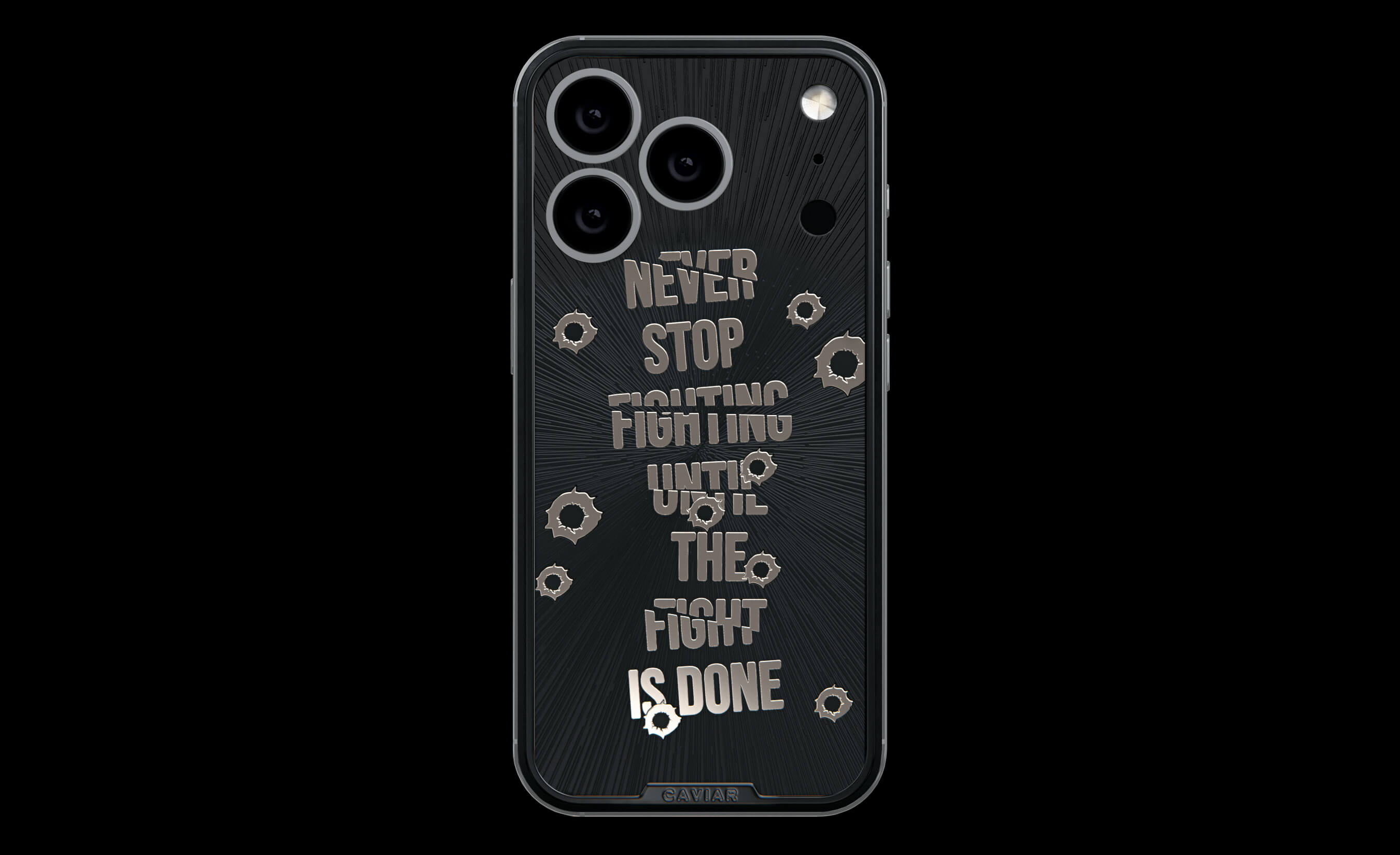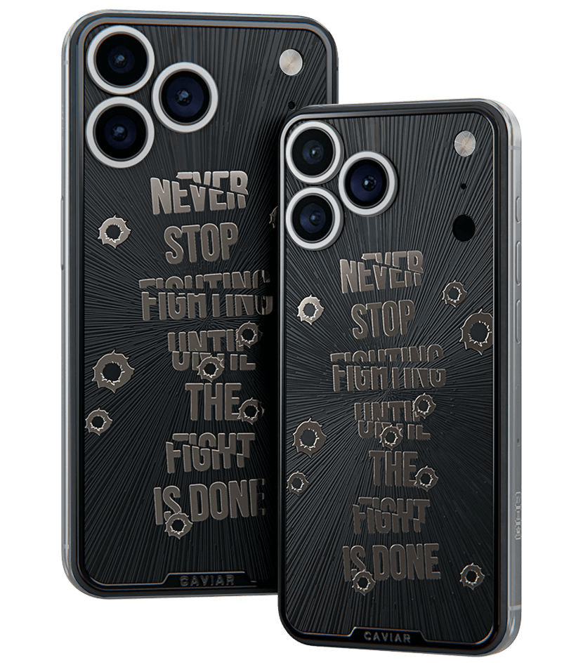 Дизайнеры Caviar создал истинный символ настойчивости и неумолимой воли – iPhone 17 Pro Capone. Холодный, сдержанный дизайн титанового корпуса воплощает мужественность и авторитет. Стилизованные изображения пулевых отверстий, обрамляющие мантру "Не переставай бороться, пока бой не окончен!" делают этот телефон настоящим талисманом тех, кто продолжает сражаться даже перед лицом трудностей. Станьте обладателем модели Capone уже сегодня, и пусть каждый встречный знает, что нет в мире силы, способной остановить вас.