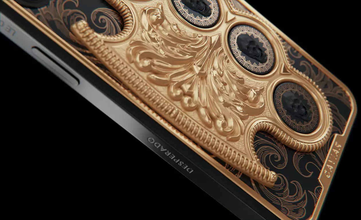 Корпус смартфона также выполнен из титана, применяемого в авиационной промышленности, и окрашен в цвет латиноамериканской ночи с помощью технологии PVD. На металлическом панно в технике лазерной гравировки выполнены изысканные узоры золотого цвета.