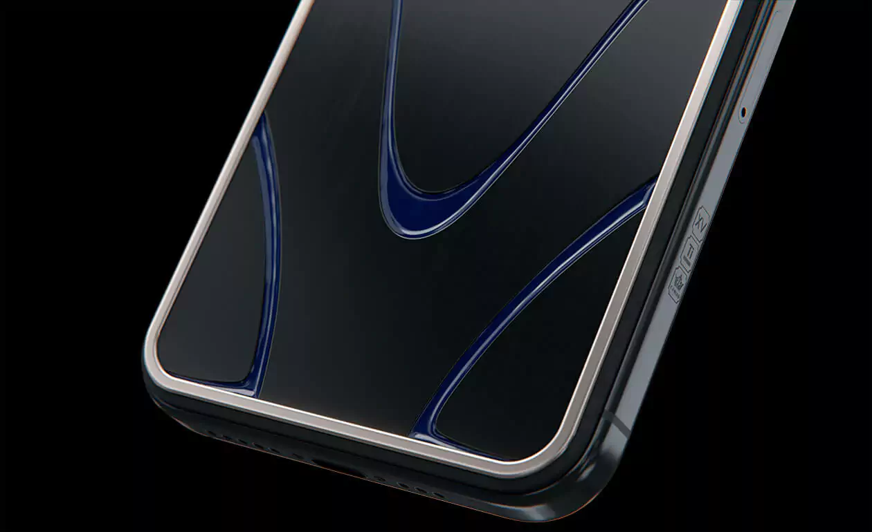 Плавные линии, цветовые акценты, узнаваемая текстура - все это напоминает о Apple Vision Pro и переносит вас в мир виртуальных приключений. Корпус смартфона сделан из титана авиационного класса, украшен цветными акцентами и лазерными гравировками.