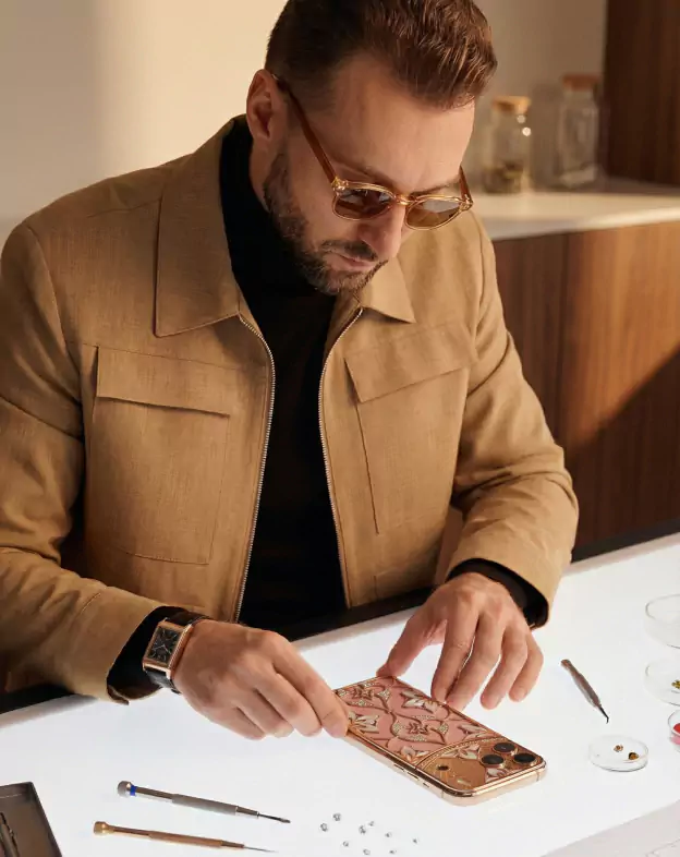 Каждый телефон из коллекции «Райский сад» создаётся командой мастеров Caviar, объединяющей ювелирную работу, художественную отделку и точную ручную сборку В основе лежит новейший iPhone 17 Pro, всё остальное выполнено вручную. Гравировка. Инкрустация. Роспись. Часы кропотливого труда, превращённые в то, к чему хочется прикоснуться.