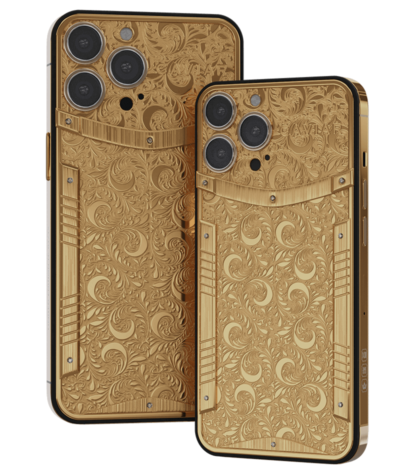 Выполненный полностью из золота, он завораживает и притягивает взгляды. Тонкая работа по художественной гравировке на ювелирном металле, инкрустация 8 сверкающими бриллиантами, богатый декоративный орнамент в русском народном стиле. Caviar iPhone 14 Pro Victory Pure Gold создан для истинных ценителей роскоши.