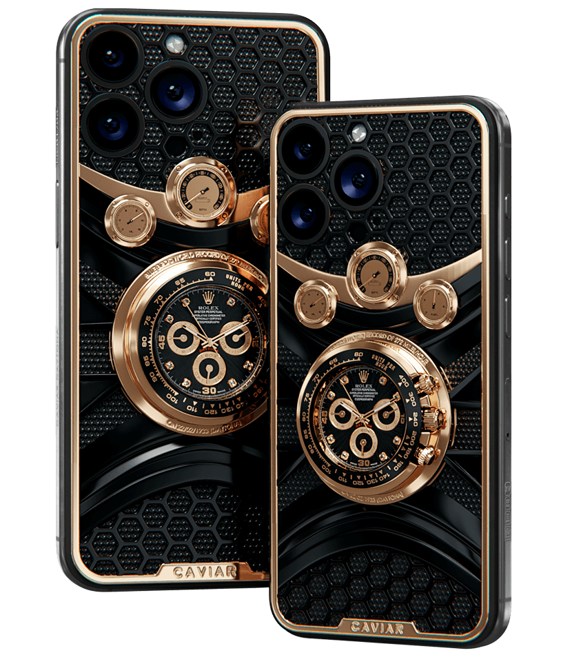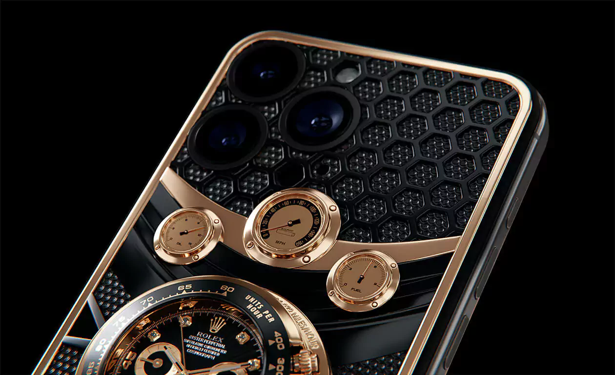 Обратите внимание, часы Rolex - не единственное усложнение iPhone, а часть целой художественной композиции, отдающей дань уважения истории коллекции Rolex Daytona. Корпус телефона выполнен в стиле гоночных автомобилей 30-ых годов, таких как Blue Bird Кэмпбелла, установившей на трассе Daytona мировой рекорд скорости. Декоративные спидометры и переключатели, выполненные из золота создают образ приборной панели суперкара, чей подвиг положил начало великой часовой коллекции Rolex Daytona.
