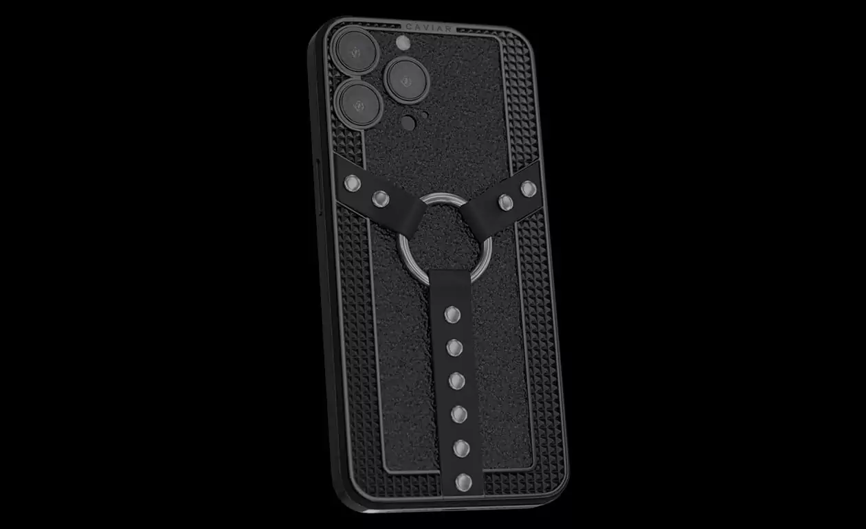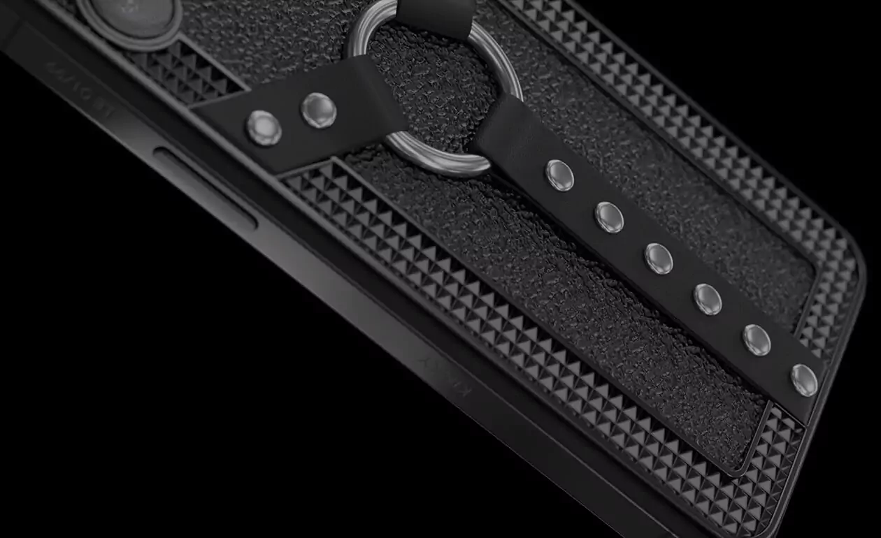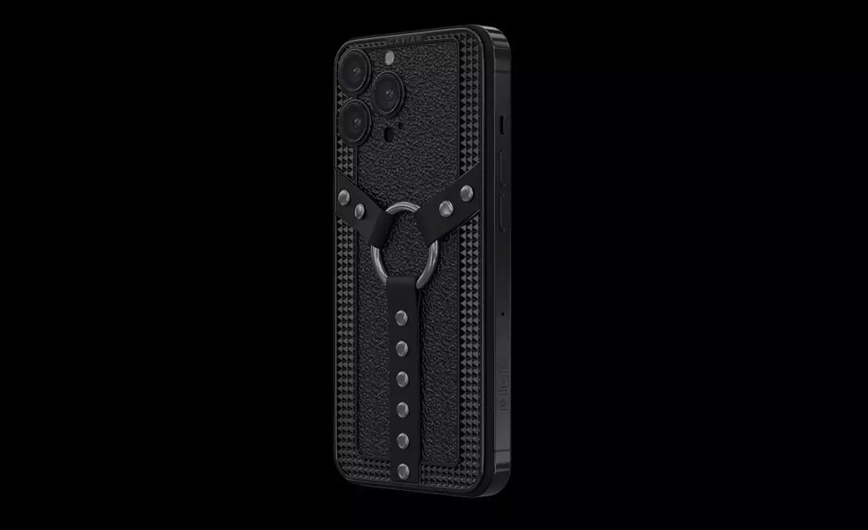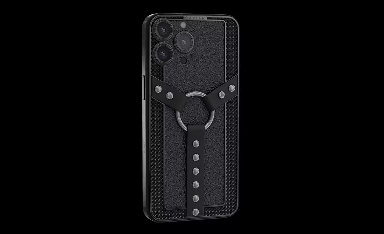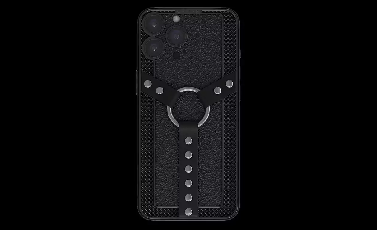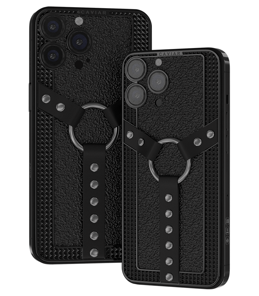 Все самые глубинные фантазии нашли свое воплощение в нахальном дизайне iPhone 13 Pro Dutiful от Caviar. Три черных кожаных ремешка с заклепками прочно удерживают на месте объемное титановое кольцо. Все это – на строгом черном фоне титанового корпуса.
