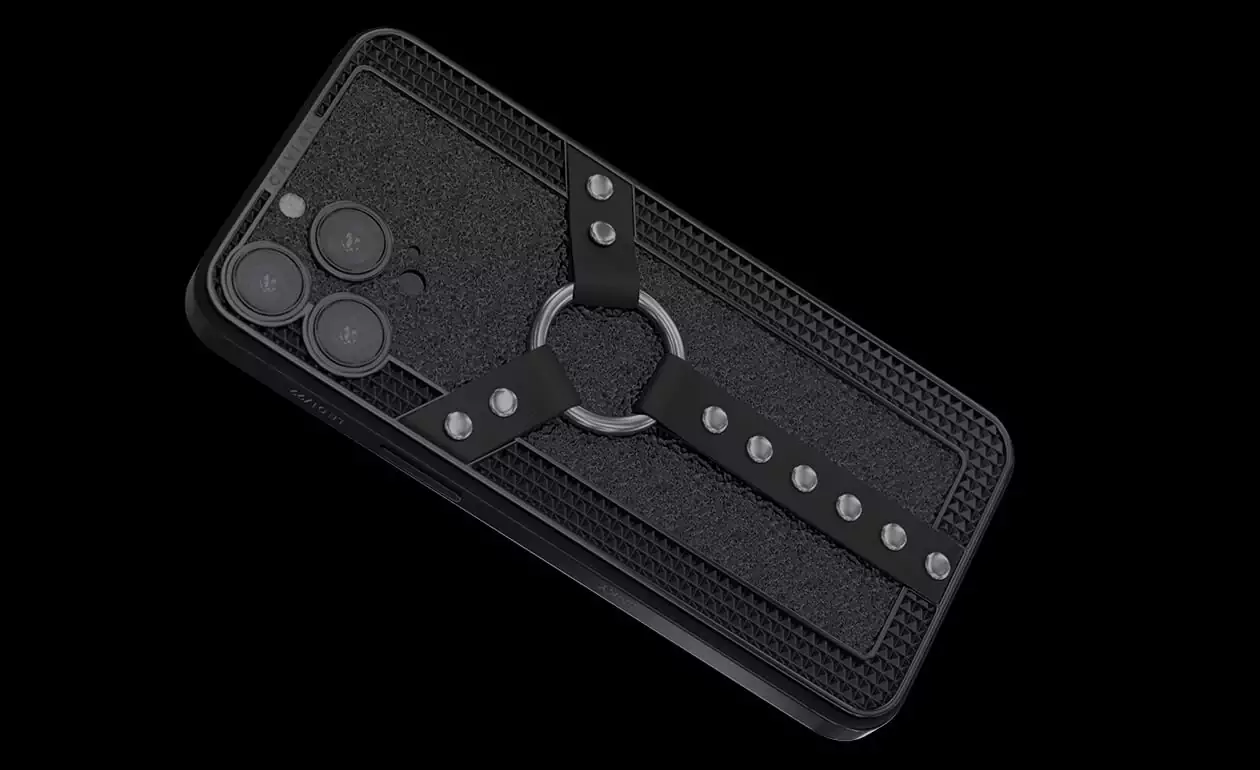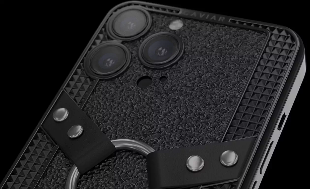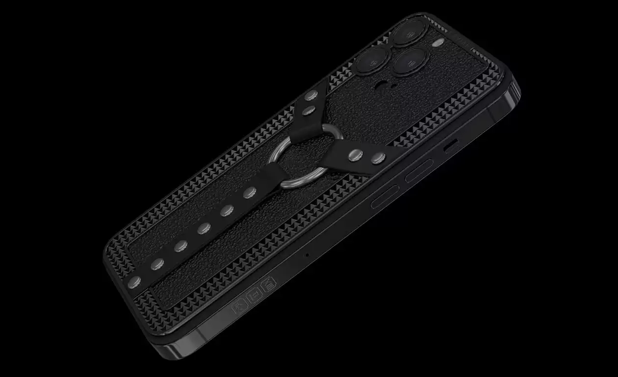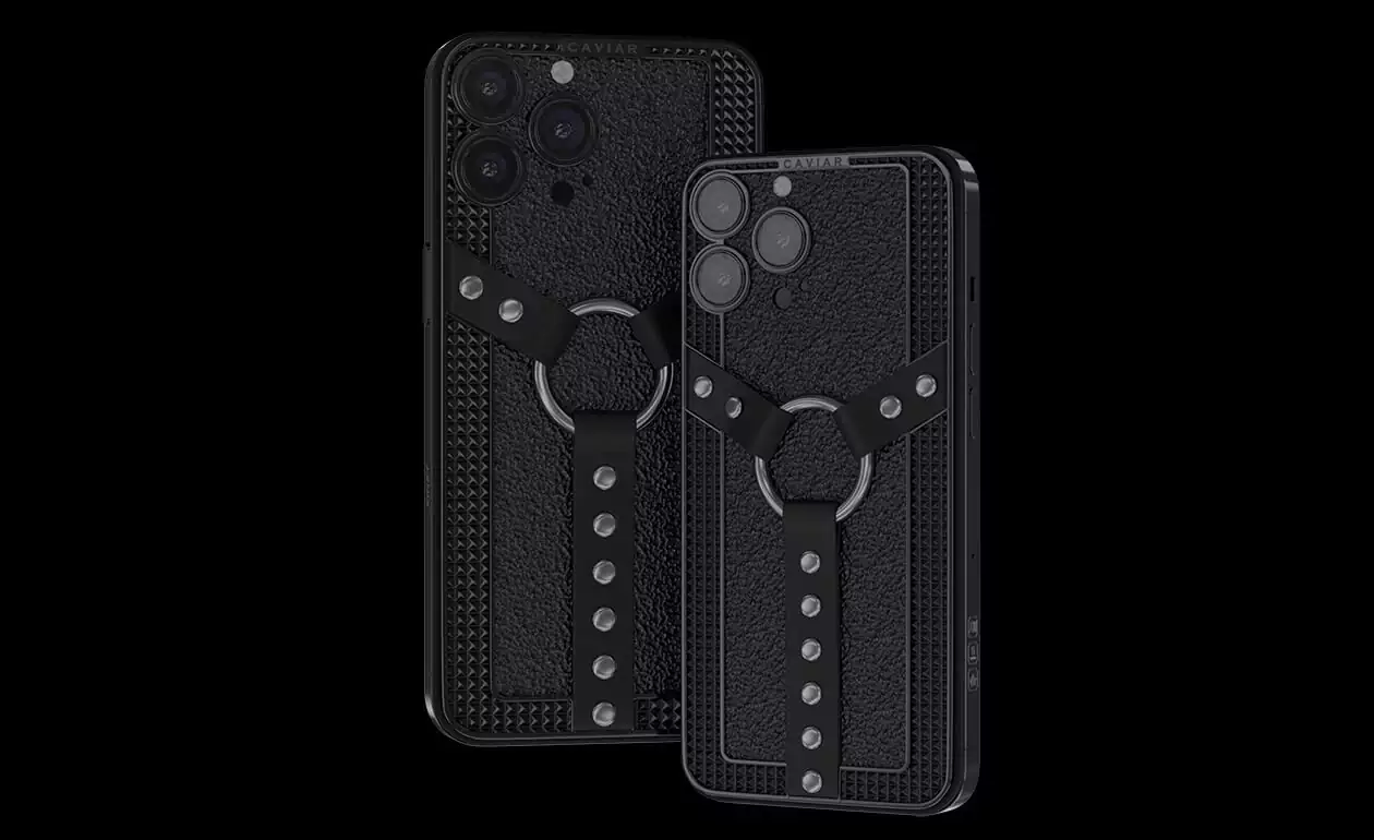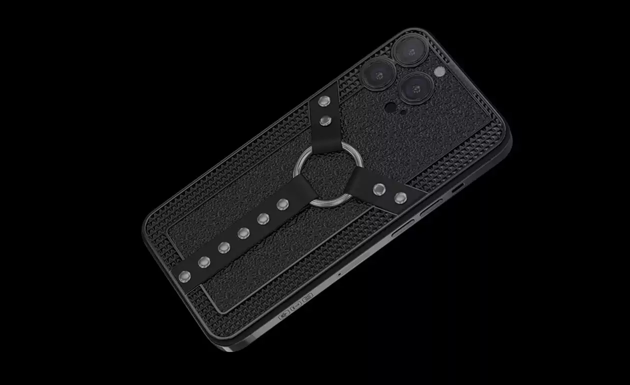 Все самые глубинные фантазии нашли свое воплощение в нахальном дизайне iPhone 13 Pro Dutiful от Caviar. Три черных кожаных ремешка с заклепками прочно удерживают на месте объемное титановое кольцо. Все это – на строгом черном фоне титанового корпуса.
