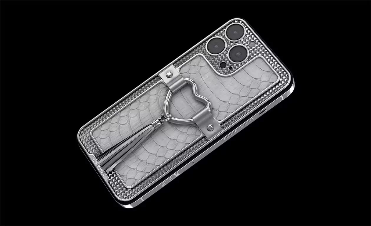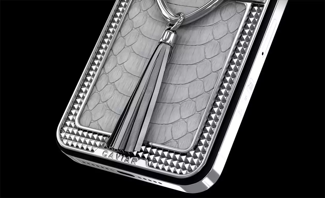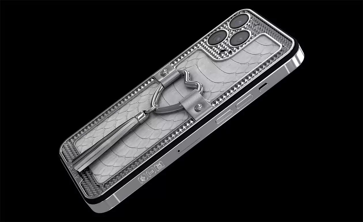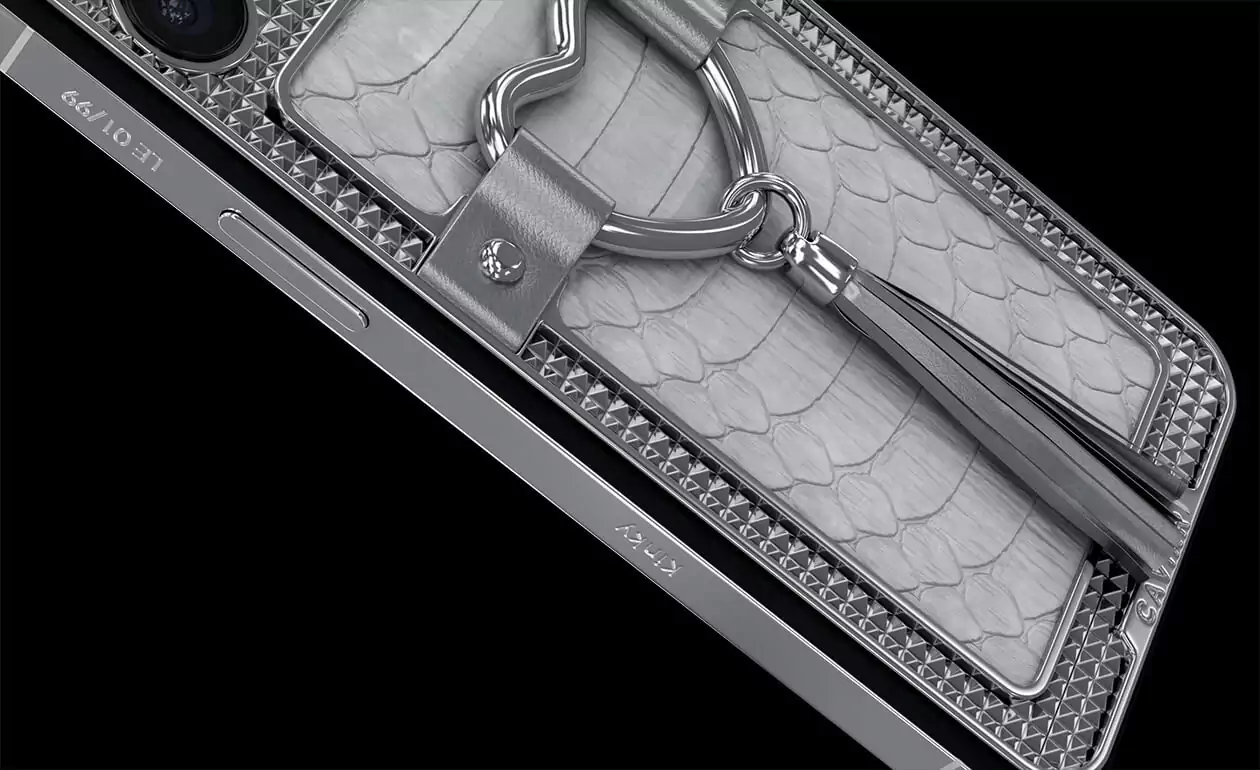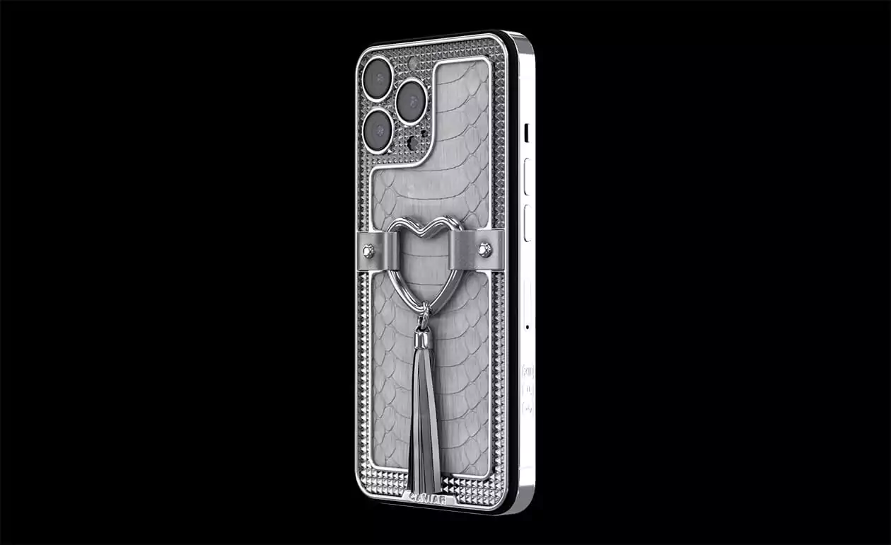 Корпус этого телефона покрыт очень редкой кожей белого питона. Украшает модель элегантное титановое сердечко, а легкую остроту стильному образу придает кисточка из тонкой телячьей кожи серебристого цвета, которая как будто намекает на то, что у любви может быть много интересных граней.