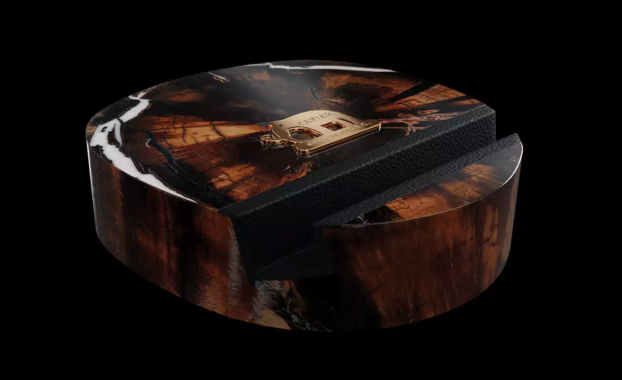 Caviar создал редчайшую в мире подставку для смартфона из поперечного среза бивня мамонта возрастом более 10 000 лет. Особенно хорошо она будет смотреться с кастомным iPhone 16 Pro от Caviar из коллекции “Россия”. Серия постаментов насчитывает всего 99 экземпляров, каждый из которых уникален по форме и цвету. Millennium – это подарок для ценителей древних артефактов и музейных ценностей, а также лучшее украшение кабинета руководителя.