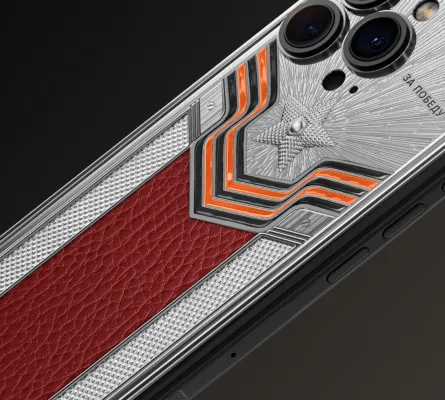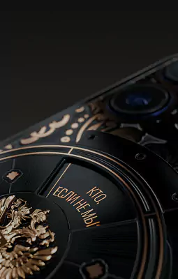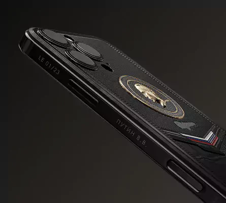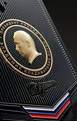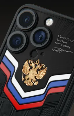 На титановой поверхности телефона выгравирована известная цитата В.В. Путина - “Сила России - в нас самих”, сказанная им во время выступления перед Государственной Думой седьмого созыва в 2016 году.