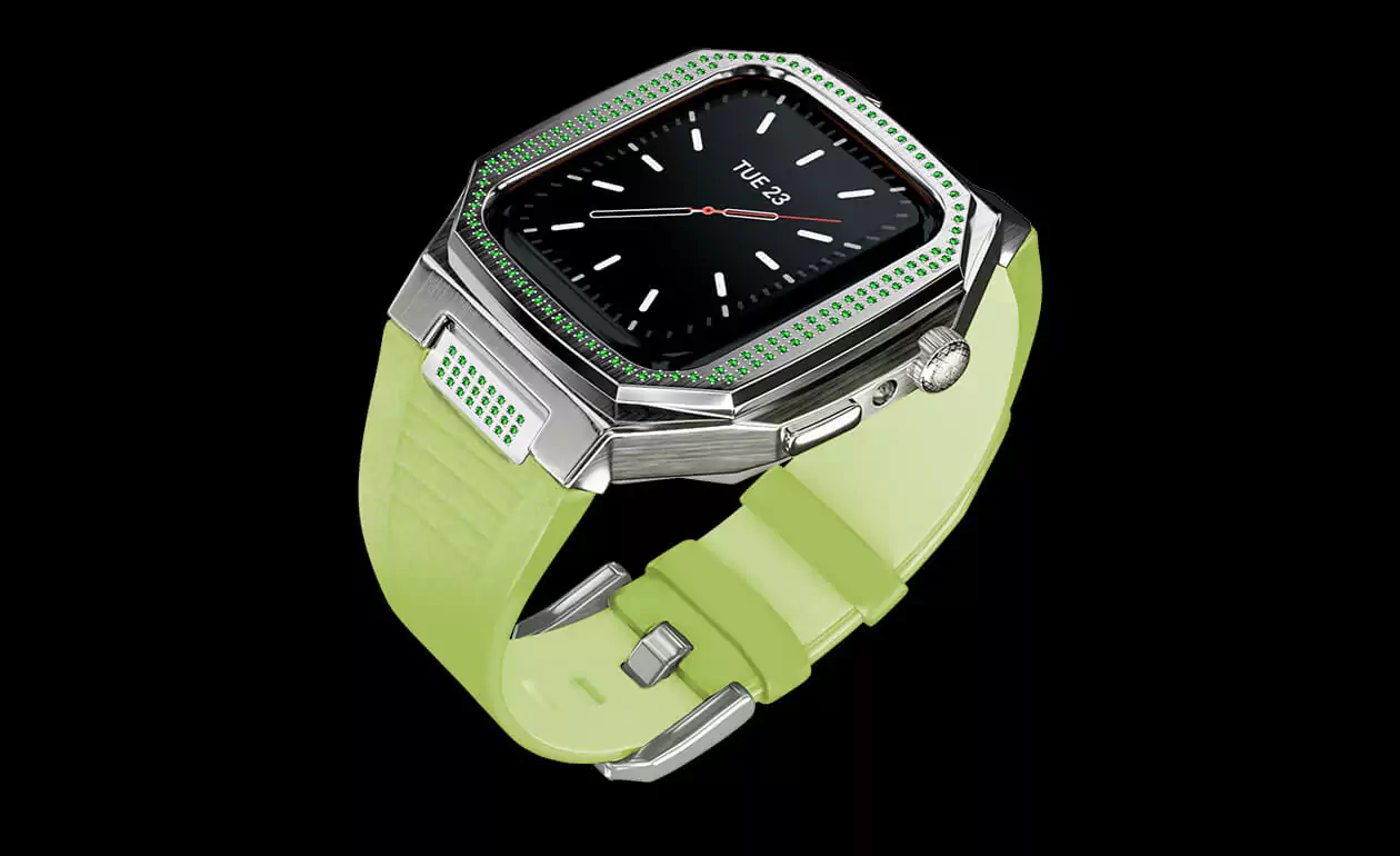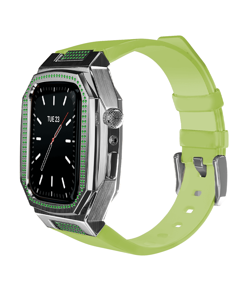Встречайте корпус Classic Jade для Apple Watch. Изготовленный из нержавеющей стали 316L и дополненный зеленым каучуковым ремешком, он предлагает непревзойденный комфорт и изысканный дизайн. Но настоящее волшебство скрывается в зеленых кристаллах Swarovski, украшающих безель, придавая вашим часам неповторимый сияющий вид. Подчеркните свой стиль и высокий статус, будьте неотразимы. Добавьте нотку роскоши к своему повседневному облику с Classic Jade от Caviar.