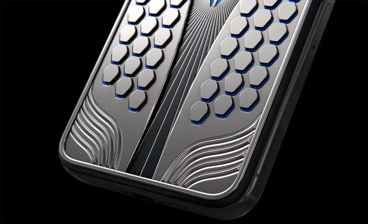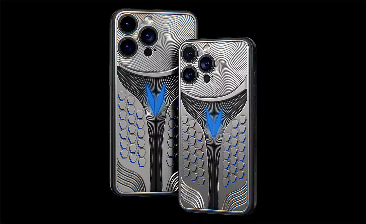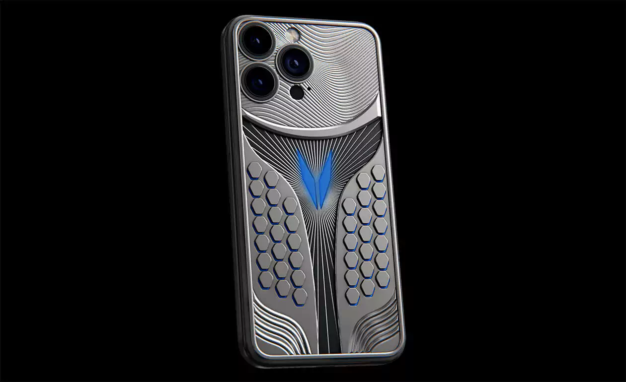 Уникальный дизайн этого смартфона захватывает воображение с первого взгляда. Он воплощает фантастический образ концепт-кара, особенностью которого являются бионические створки, создающие эффект дыхания и придающие автомобилю сходство с живым существом. iPhone от Caviar выполнен из прочного, легкого титана с цветными вставками. Мастера Caviar смогли передать уникальные створки на корпусе смартфона, делая его дизайн не просто футуристичным, а поистине инопланетным.