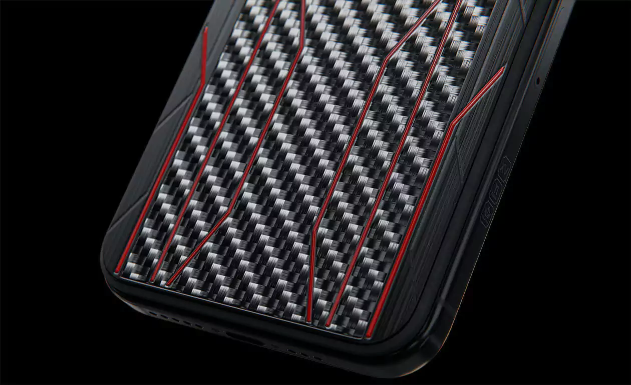 Корпус: Черный карбон, использующийся для внутренней и внешней отделки премиальных автомобилей. Вставки из черного титана.