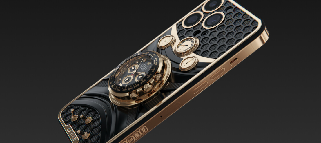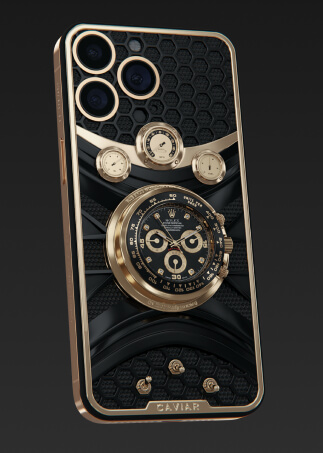 За последние 10 лет дом ювелирного дизайна Caviar создал первый в мире телефон с встроенным турбийоном, побеждающим силу гравитации. Наша экспертная команда смогла развить синтез часов и мобильных устройств, ежегодно выпуская кастомные смартфоны с часами на корпусе, в том числе культовыми Rolex Daytona.