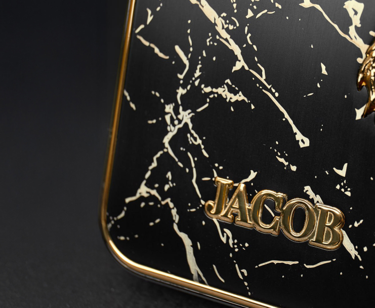 Когда дело дошло до выбора смартфона, друзья Арабо обратились к тем, кто разделяет его эстетику — бренду Caviar. Специально в качестве подарка для Джейкоба был создан смартфон с персональным дизайном, воплощающий главные черты его стиля: сложность, масштаб, архитектурную симметрию и вызывающее благородство.