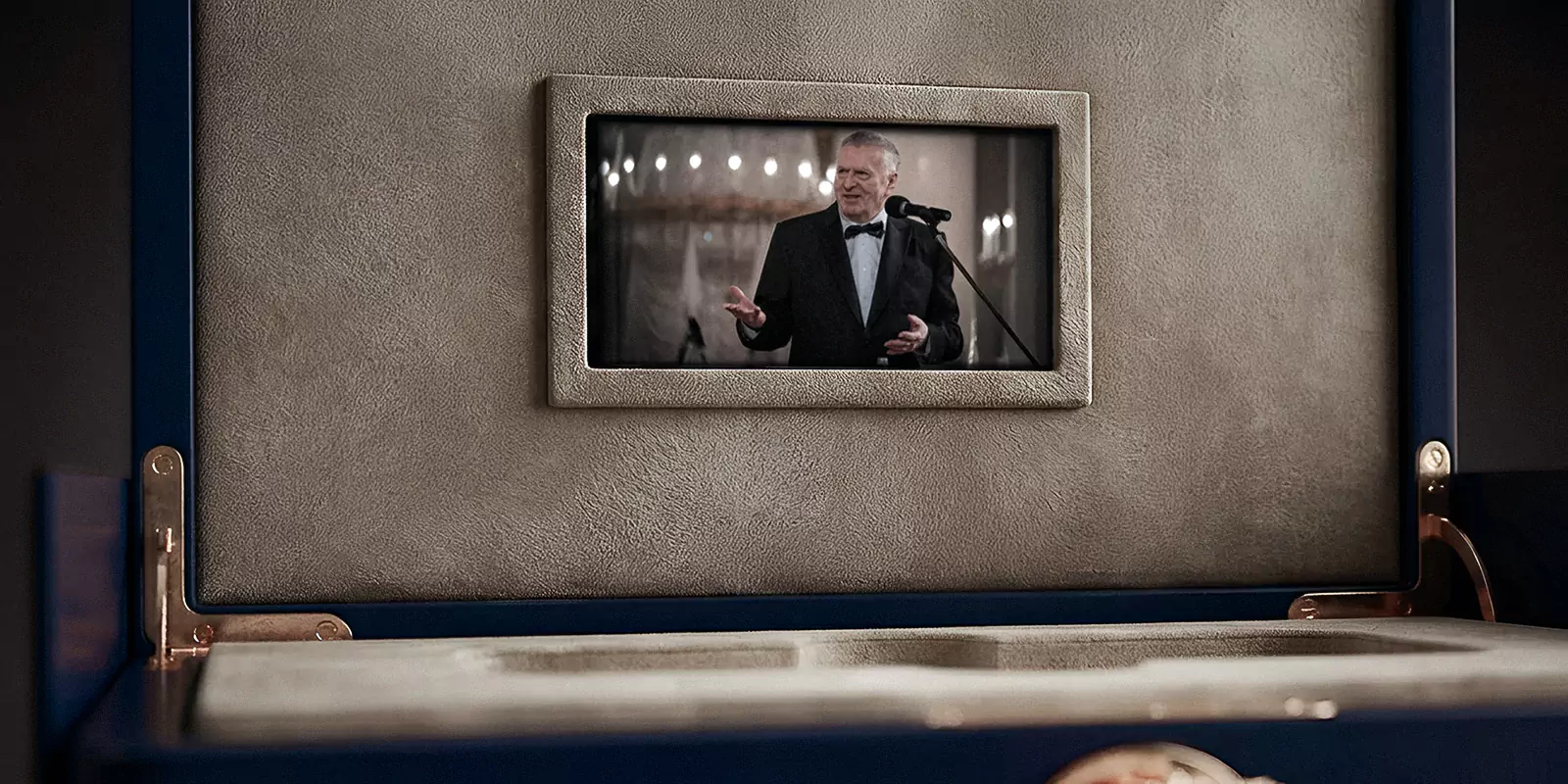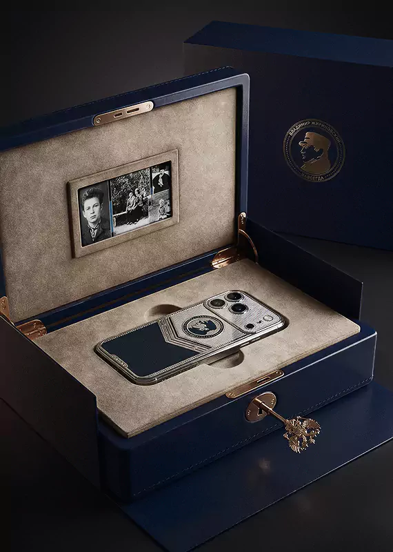 Смартфон поставляется в роскошном подарочном футляре, дизайн которого отдает дань уважения политическому наследию Владимира Вольфовича.
