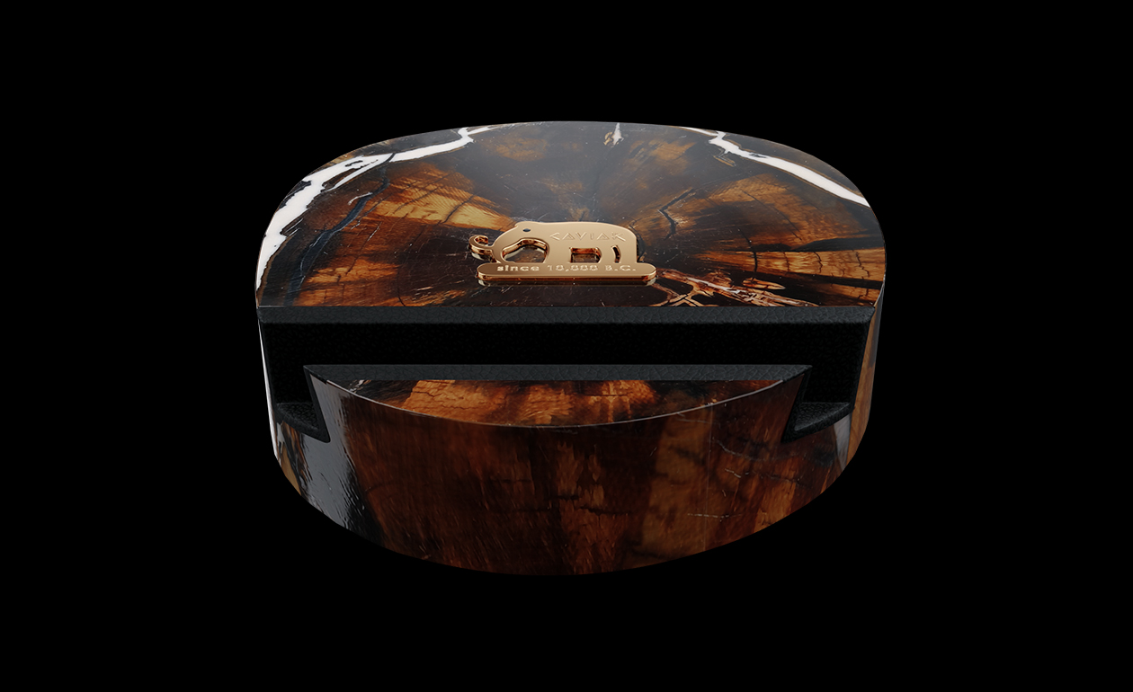 Подставка выпущена в ограниченном количестве — всего 99 экземпляров. Каждый срез бивня имеет уникальную форму, поэтому каждый экземпляр неповторим.