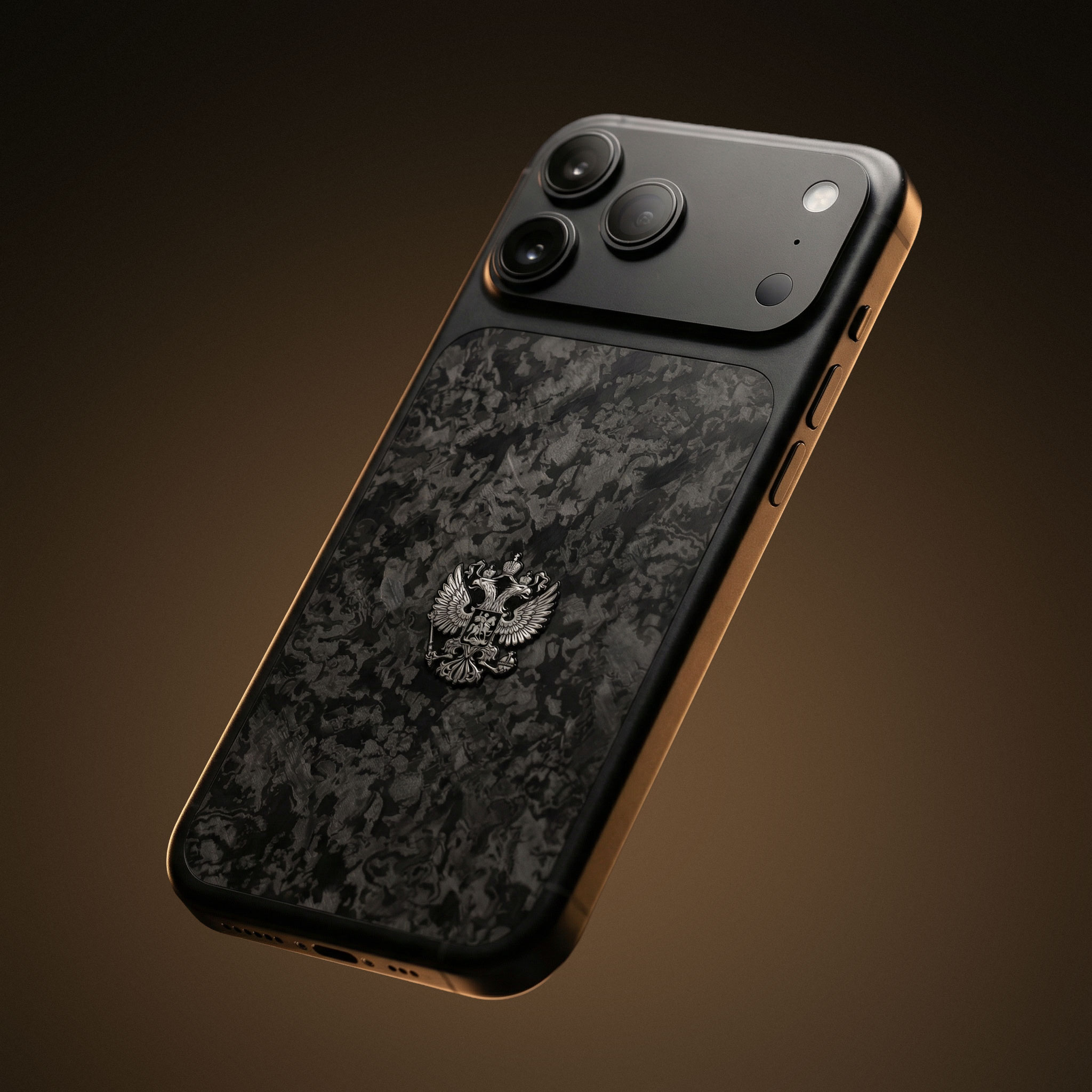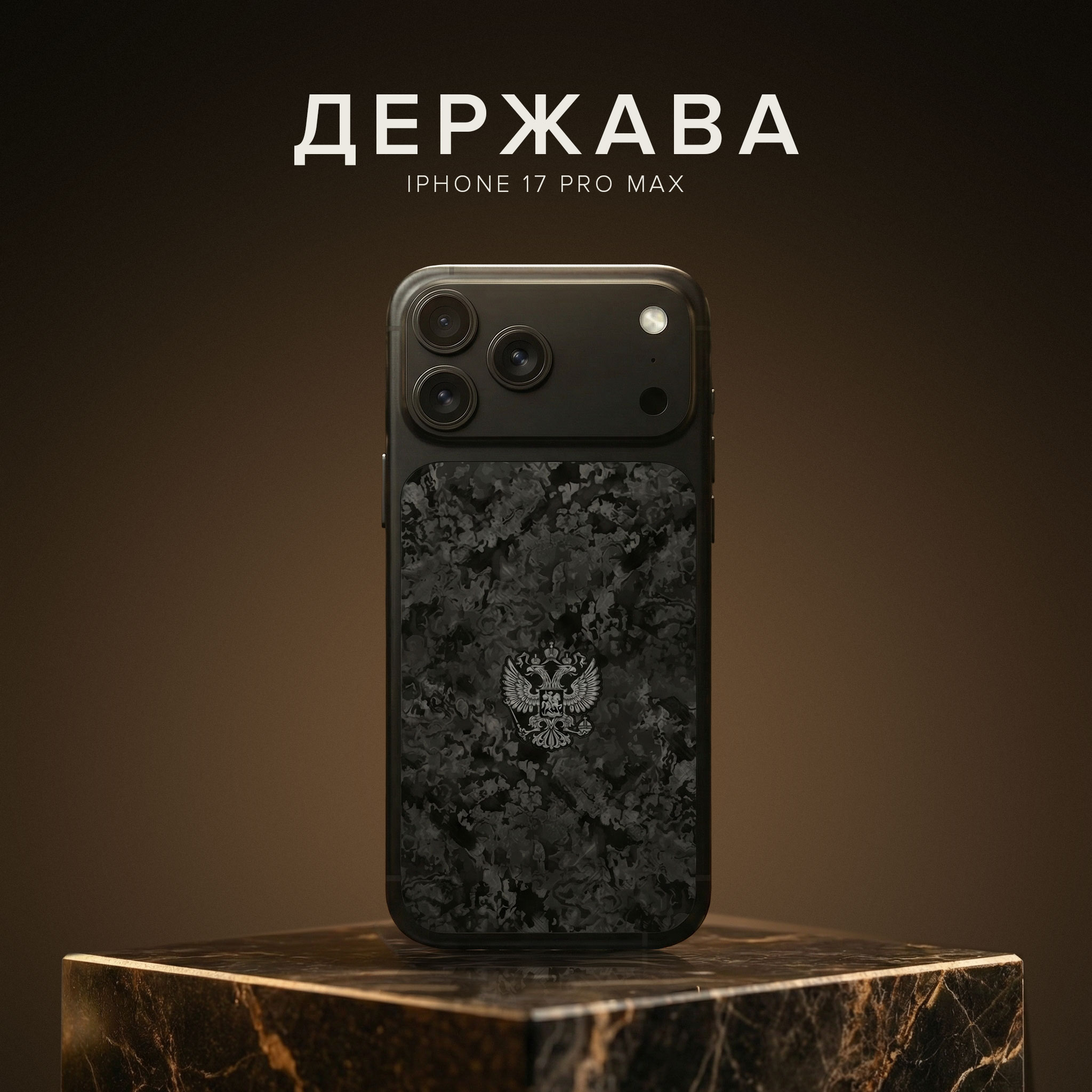 В рамках обновления коллекции также представлена модель Держава. Смартфон выполнен в минималистичной эстетике, построенной на контрасте фактуры деталей из карбона и титана. Корпус анодирован для достижения глубокого черного оттенка, а классический логотип заменен изображением двуглавого орла из авиационного титана с PVD-покрытием.