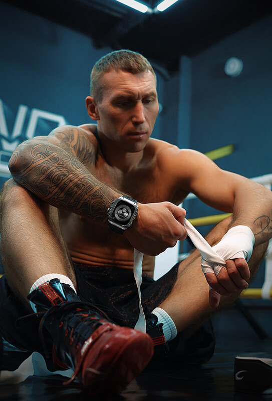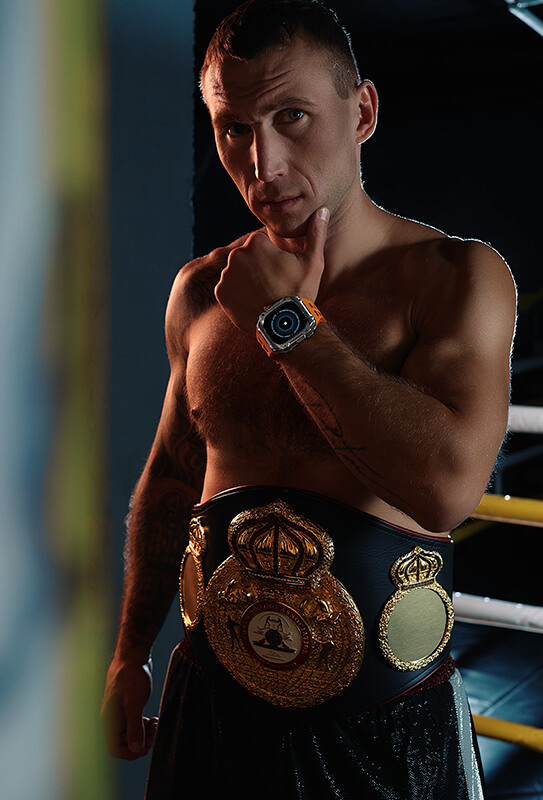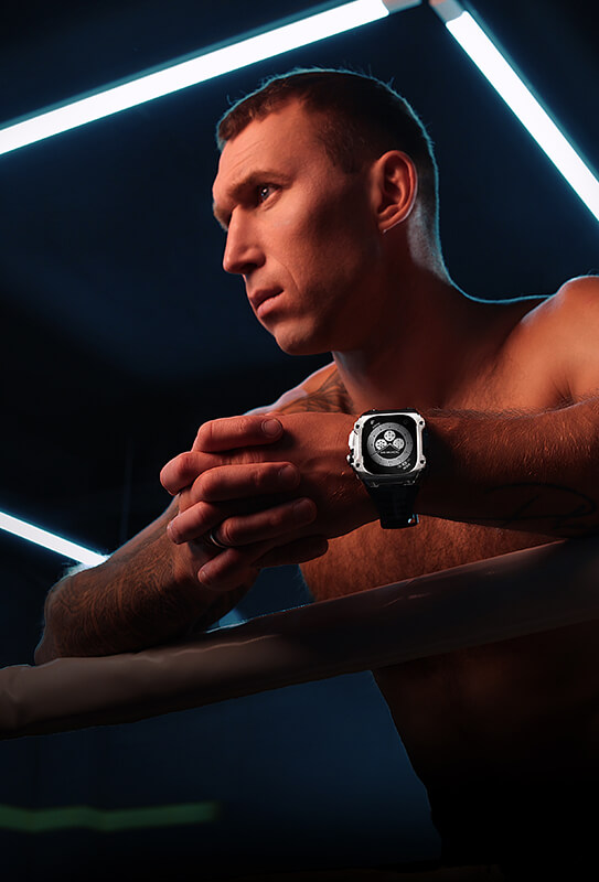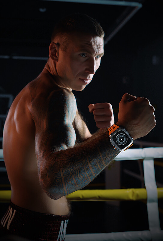 Российский боксер Андрей Сироткин, чемпион мира по боксу и кикбоксингу, протестировал новую модель стальных кейсов Airspace от компании Caviar, предназначенных для Apple Watch Ultra. Известный боксер высоко оценил этот брутальный аксессуар и снялся в эффектной фотосессии. На его запястьях вы также можете увидеть карбоновые Rage и еще одну новинку - Airspace Orange.
