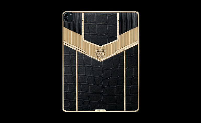 Модель «Парламент» отличается отделкой черной телячьей кожей и золотым покрытием по технологии Double Electroplated. В изысканном и классическом сочетании черного и золотого также выполнены Samsung «Защитник» и iPad «Патриот».