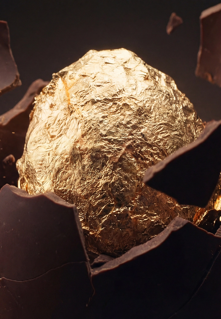Глубокий синий оттенок упаковки создаёт тишину. Внутри — золото, скрытое до момента кульминации.